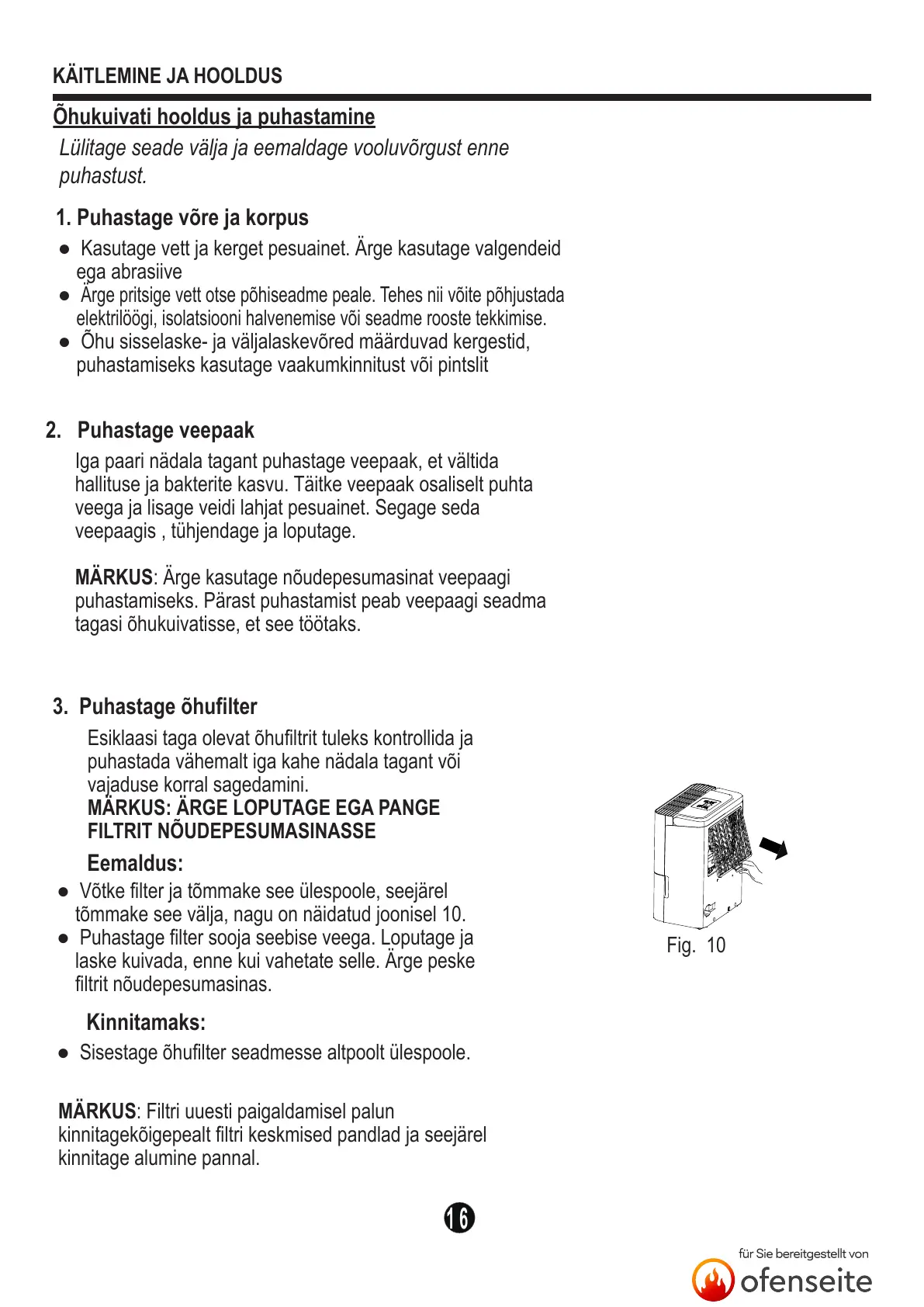 Õhukuivati hooldus ja puhastamine