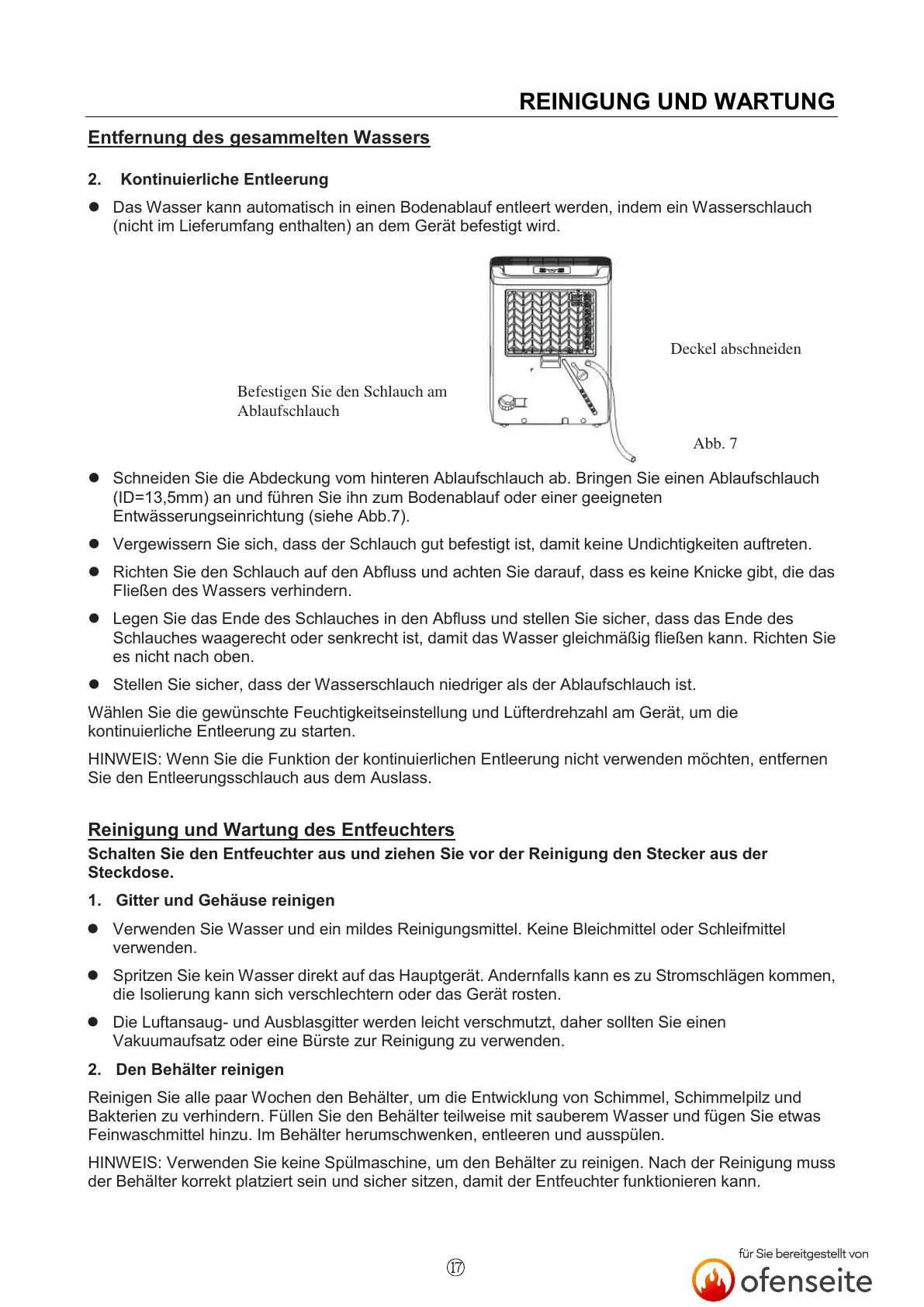 (ID=13,5mm) an und führen Sie ihn zum Bodenablauf oder einer geeigneten