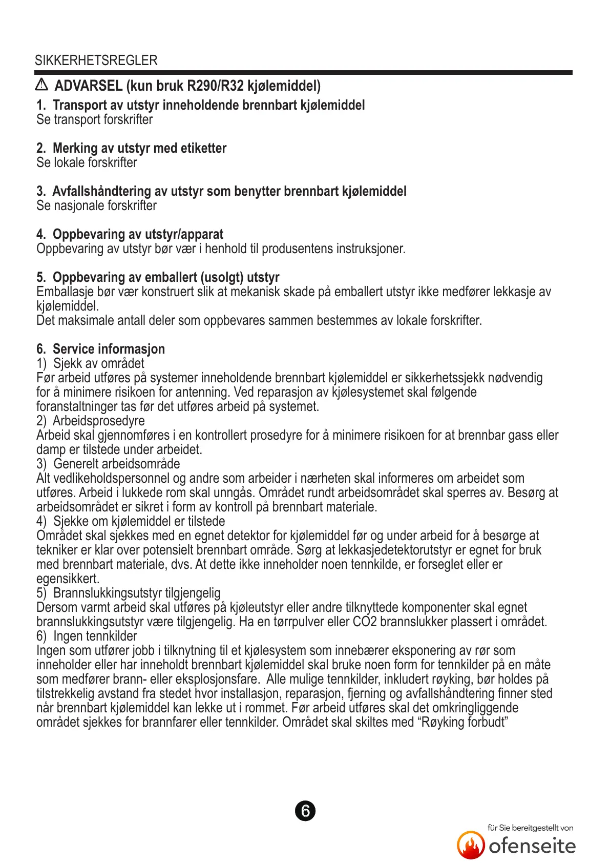 inneholder eller har inneholdt brennbart kjølemiddel skal bruke noen form for tennkilder på en måte