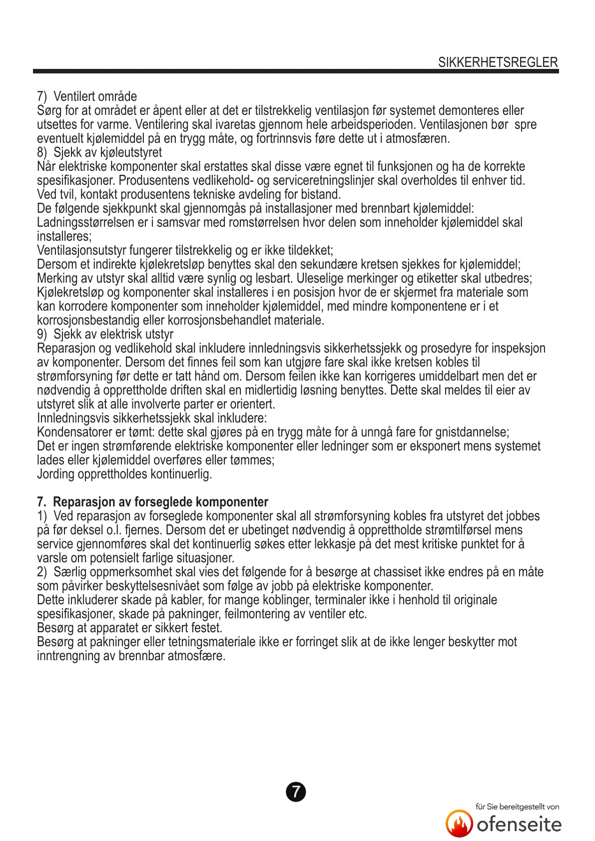 De følgende sjekkpunkt skal gjennomgås på installasjoner med brennbart kjølemiddel: