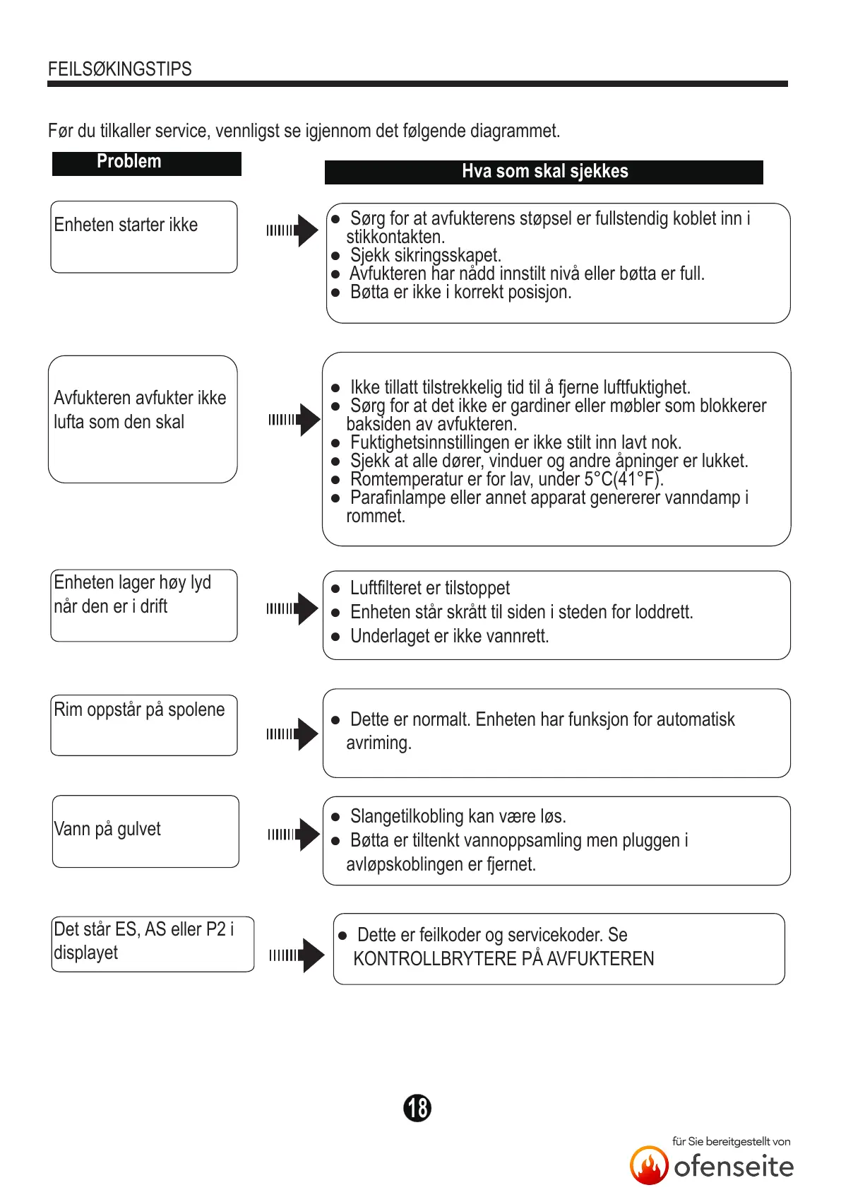 Før du tilkaller service, vennligst se igjennom det følgende diagrammet.
