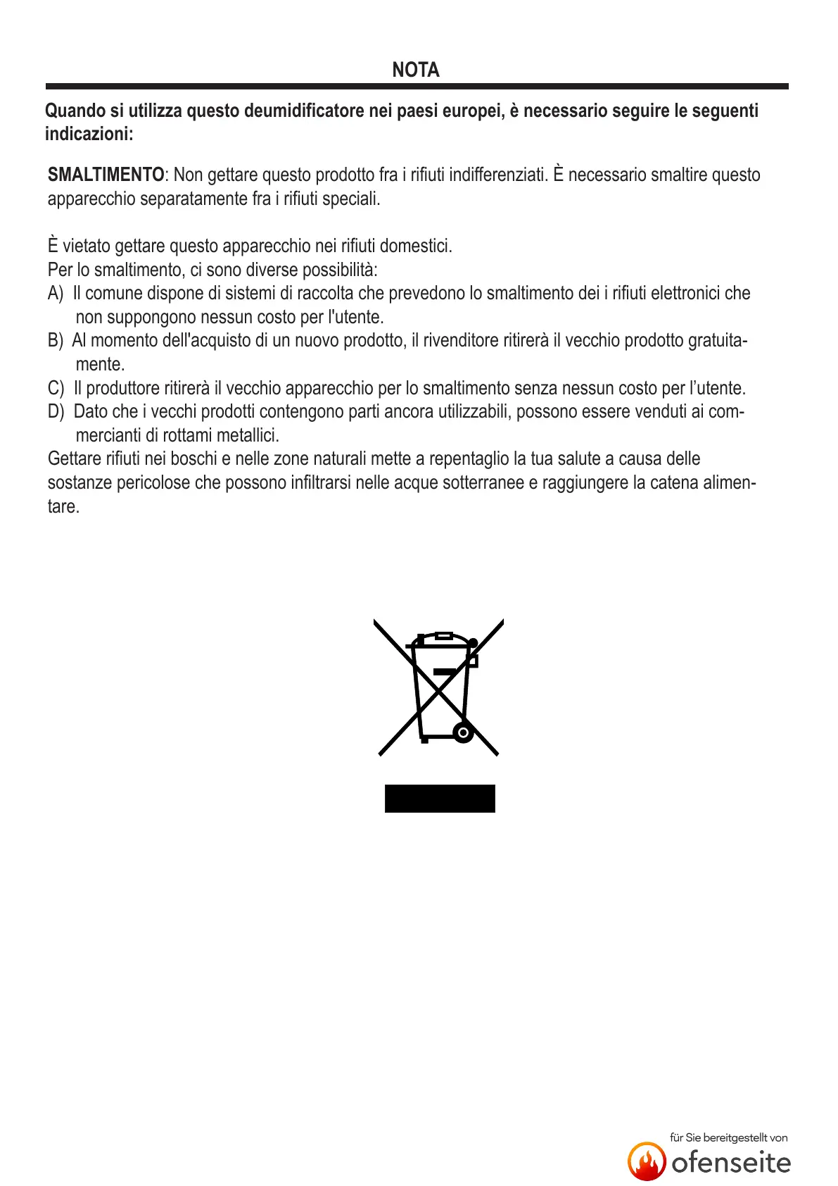 SMALTIMENTO: Non gettare questo prodotto fra i rifiuti indifferenziati. È necessario smaltire questo