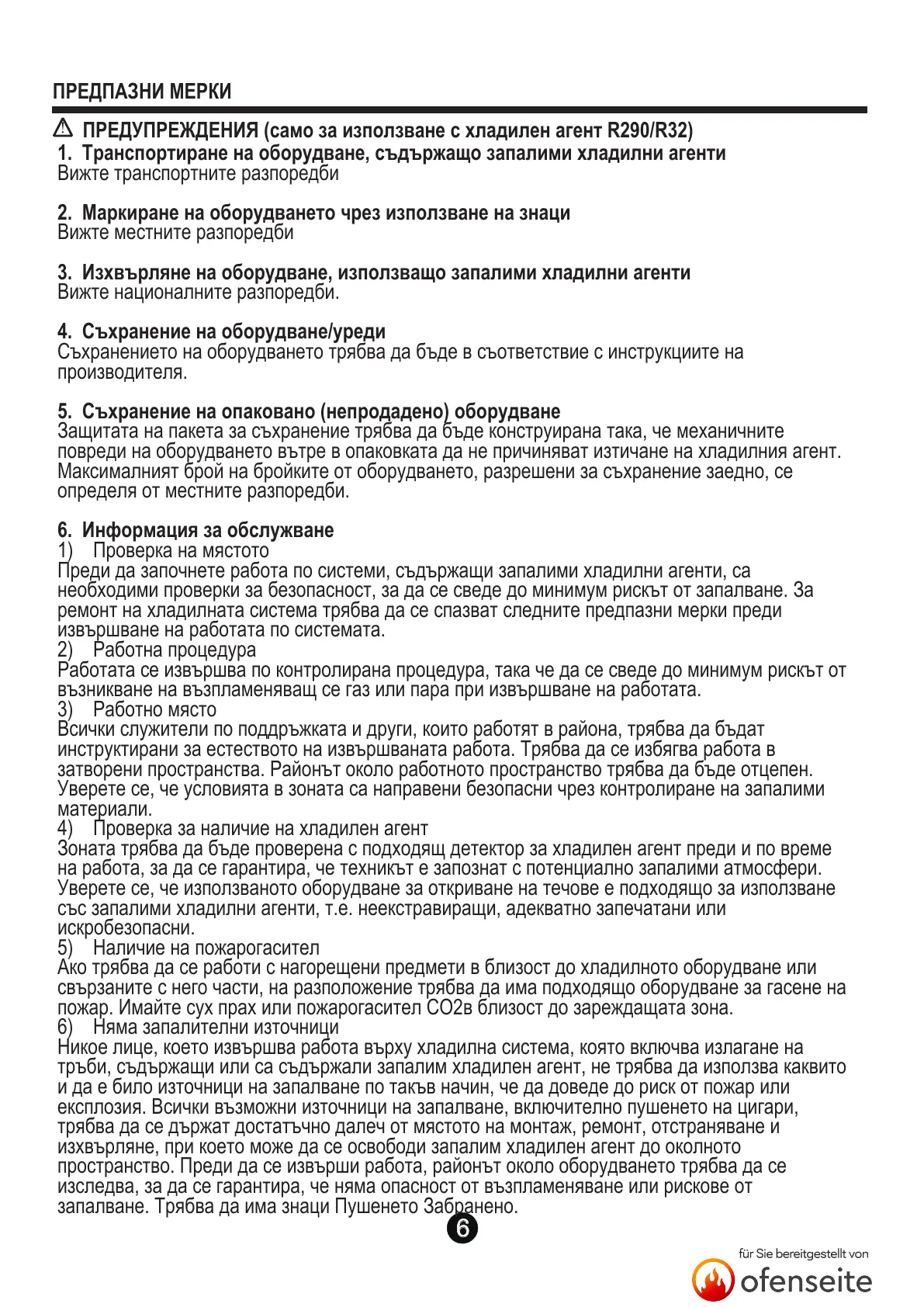 ПРЕДУПРЕЖДЕНИЯ (само за използване с хладилен агент R290/R32)
