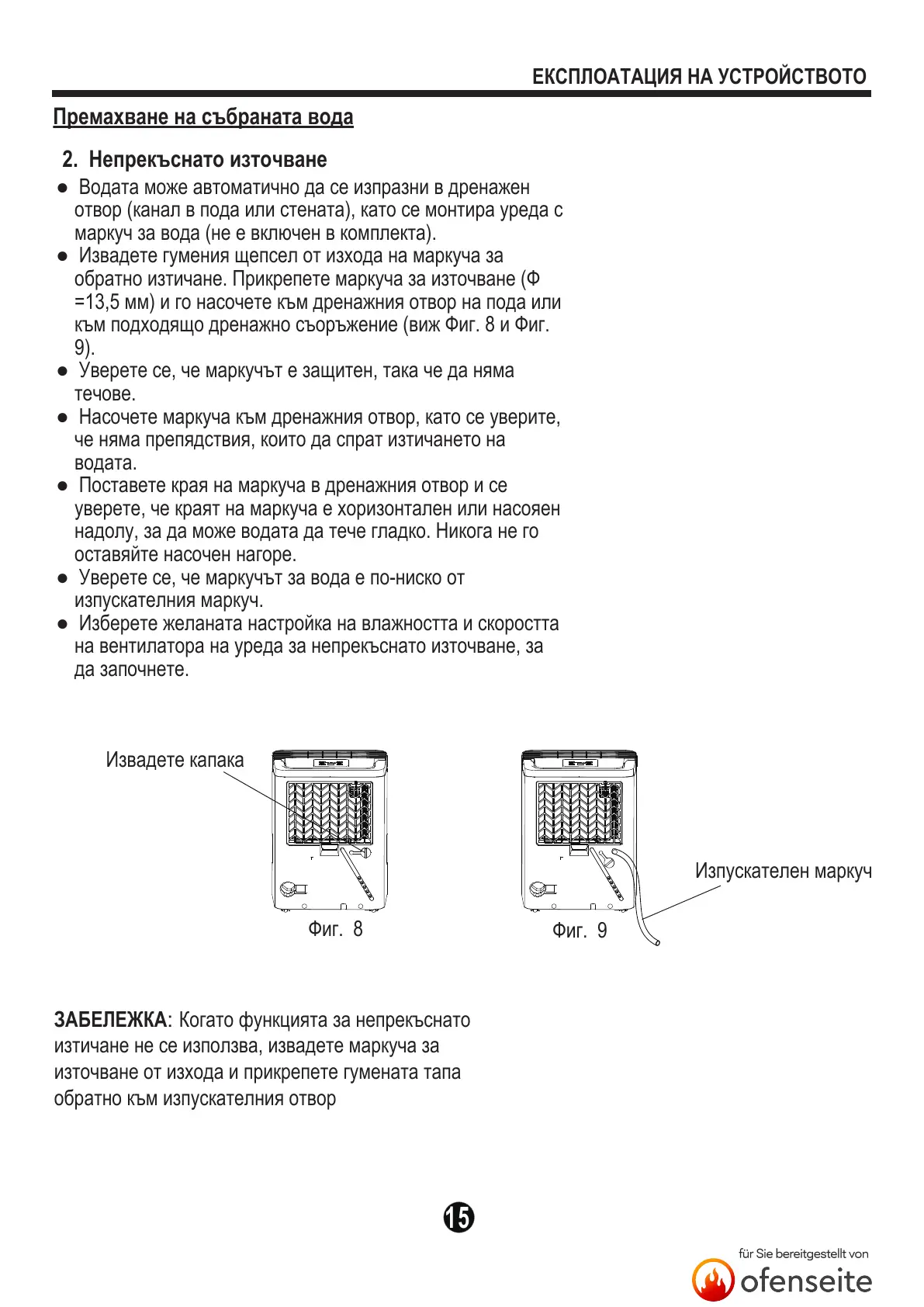 обратно изтичане. Прикрепете маркуча за източване (Ф
