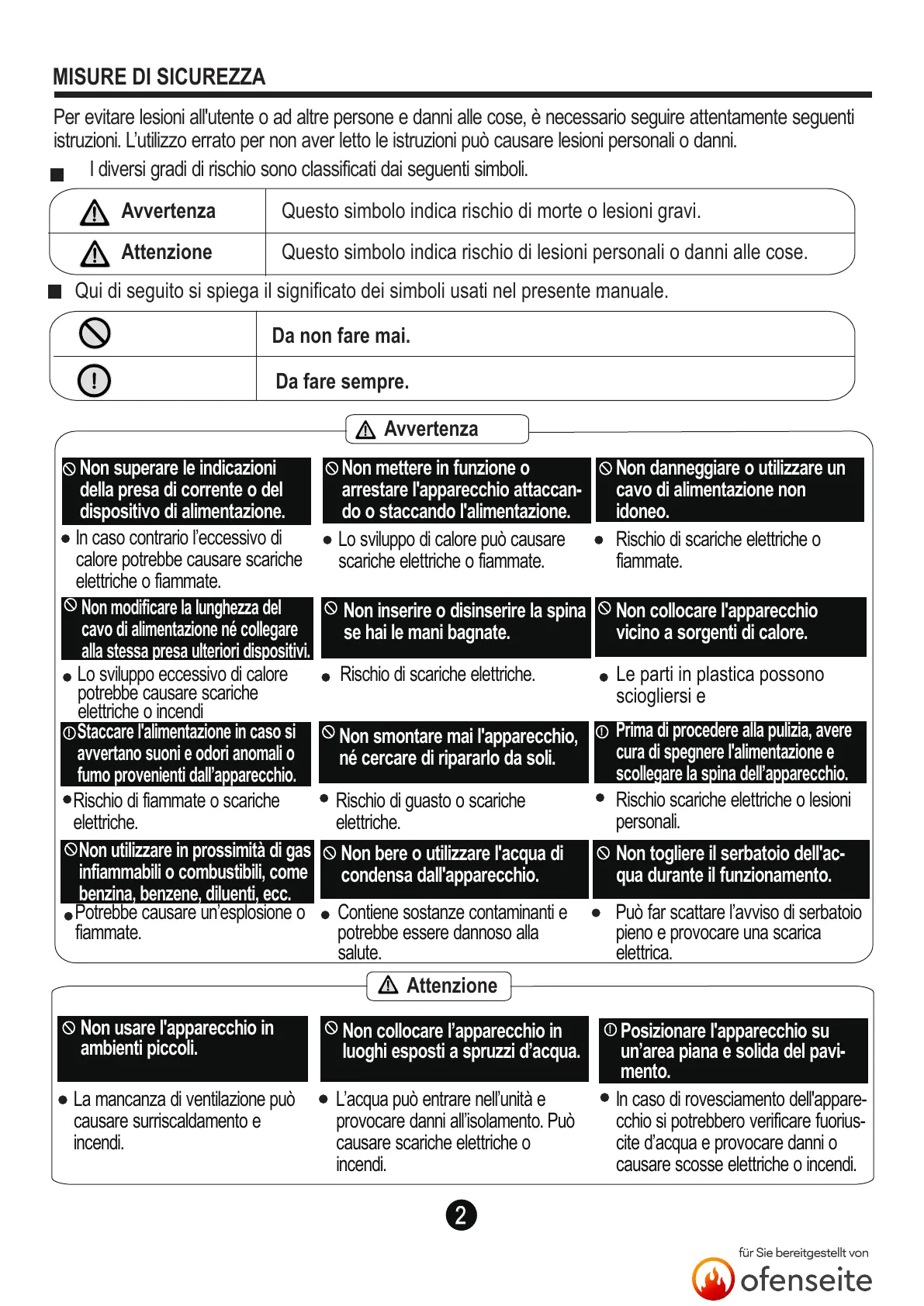 Per evitare lesioni all'utente o ad altre persone e danni alle cose, è necessario seguire attentamente seguenti