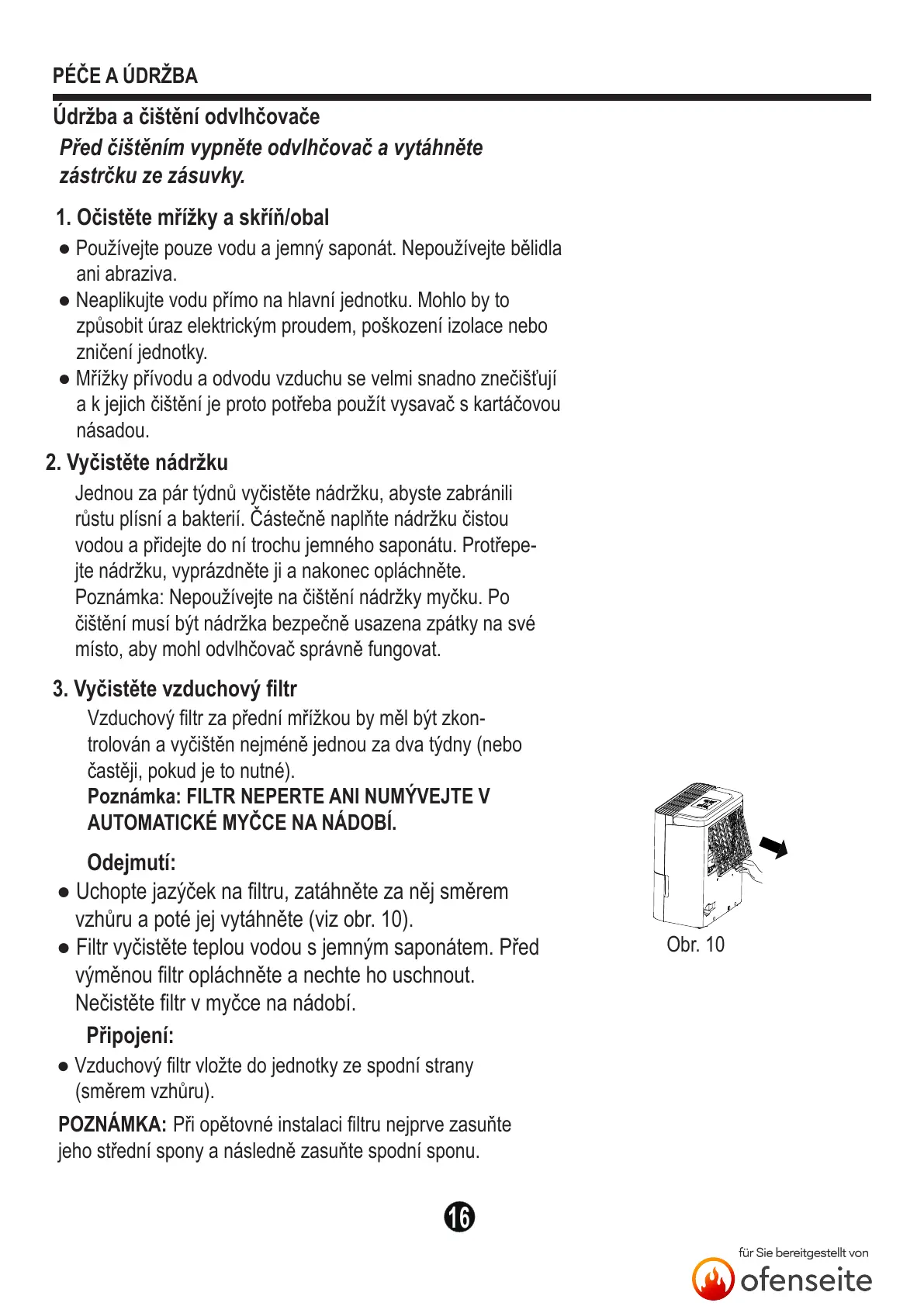 Před čištěním vypněte odvlhčovač a vytáhněte