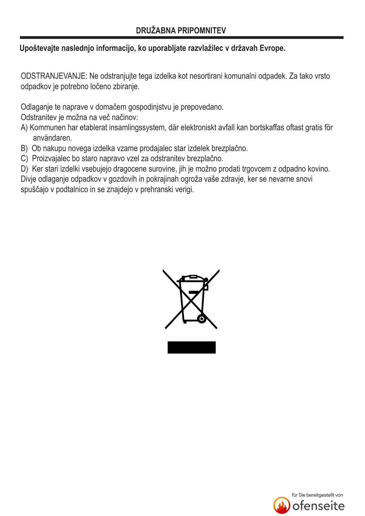 Odlaganje te naprave v domačem gospodinjstvu je prepovedano.