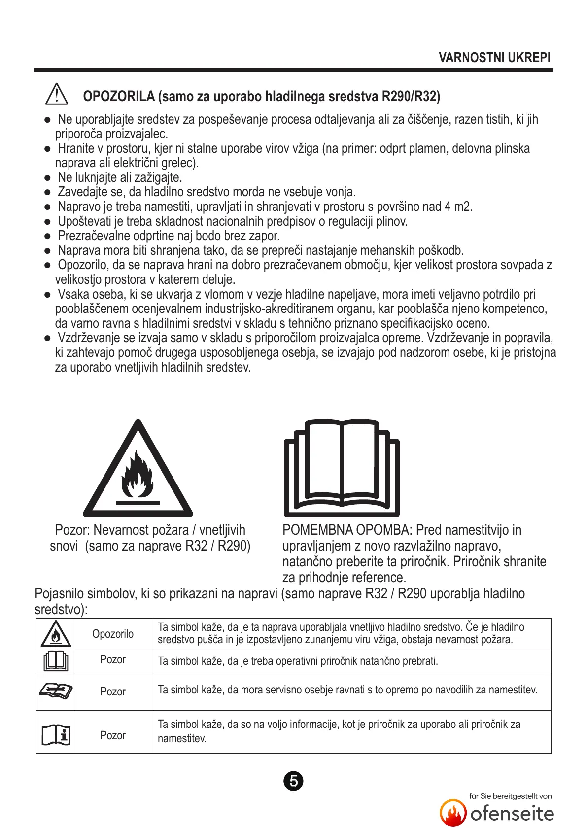OPOZORILA (samo za uporabo hladilnega sredstva R290/R32)