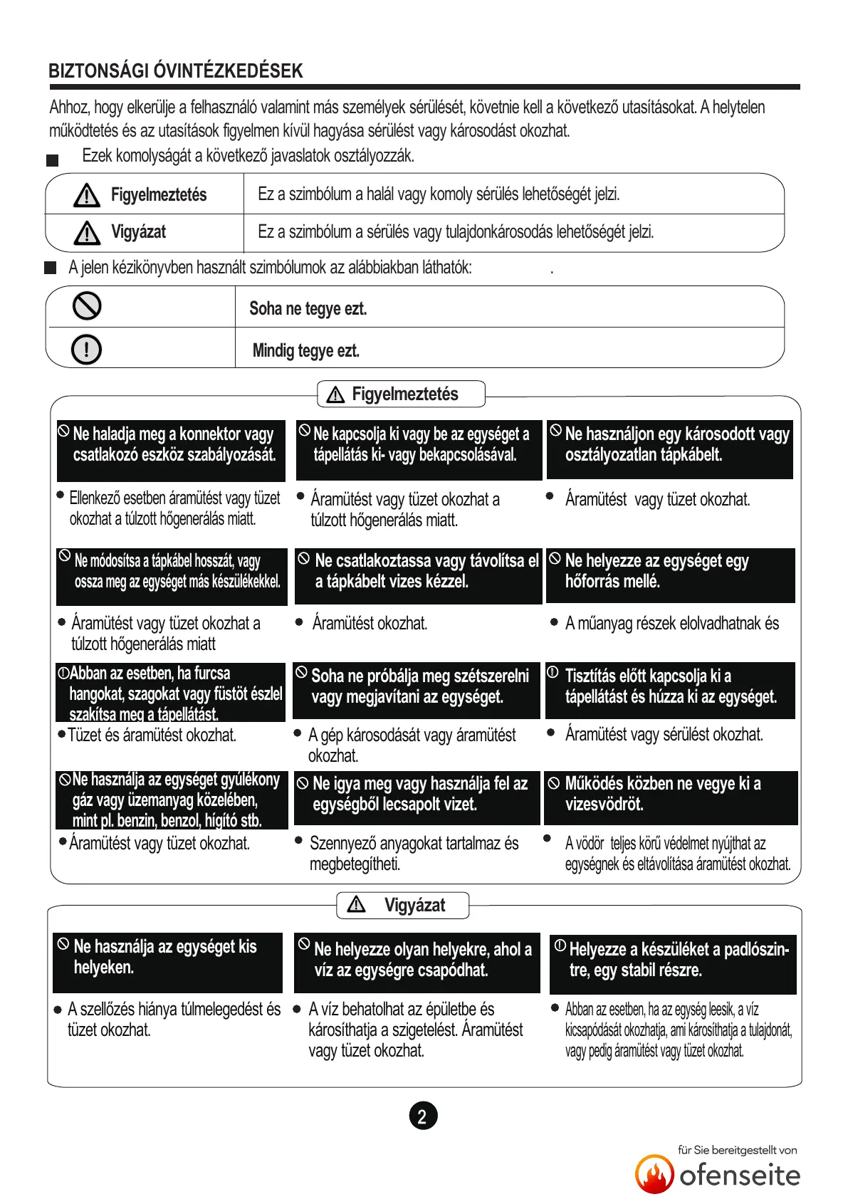 Tüzet és áramütést okozhat. A gép károsodását vagy áramütést