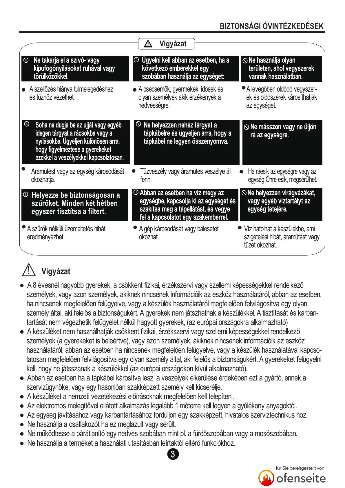 személy által, aki felelős a biztonságukért. A gyerekek nem játszhatnak a készülékkel. A tisztítását és karban-