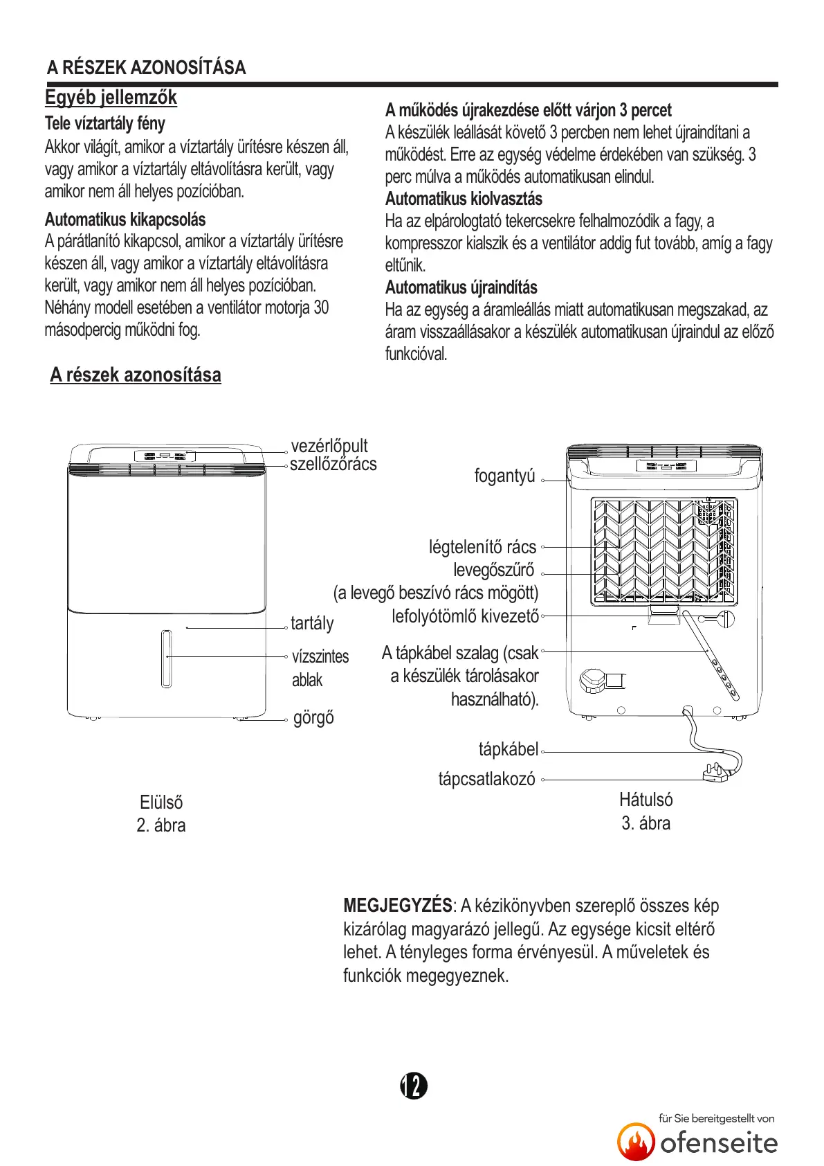 A párátlanító kikapcsol, amikor a víztartály ürítésre