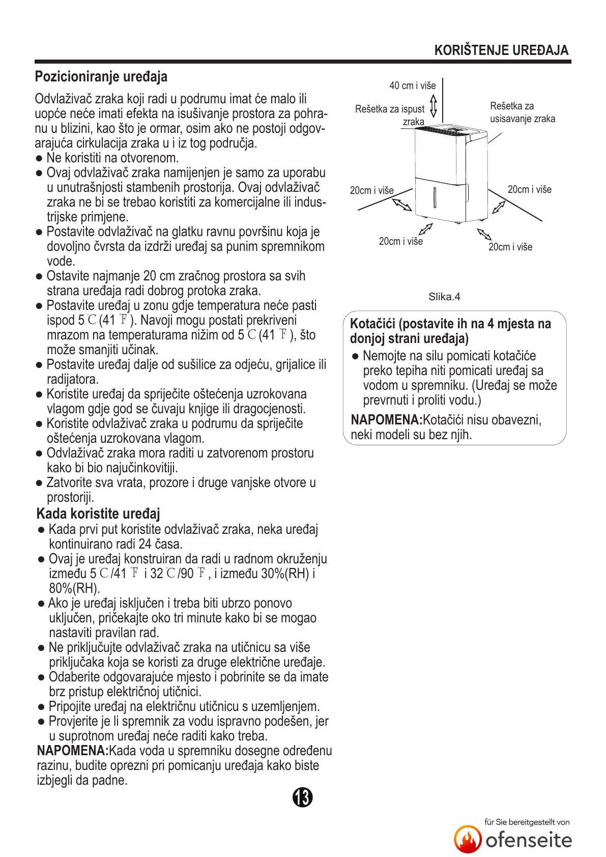 ● Ovaj odvlaživač zraka namijenjen je samo za uporabu