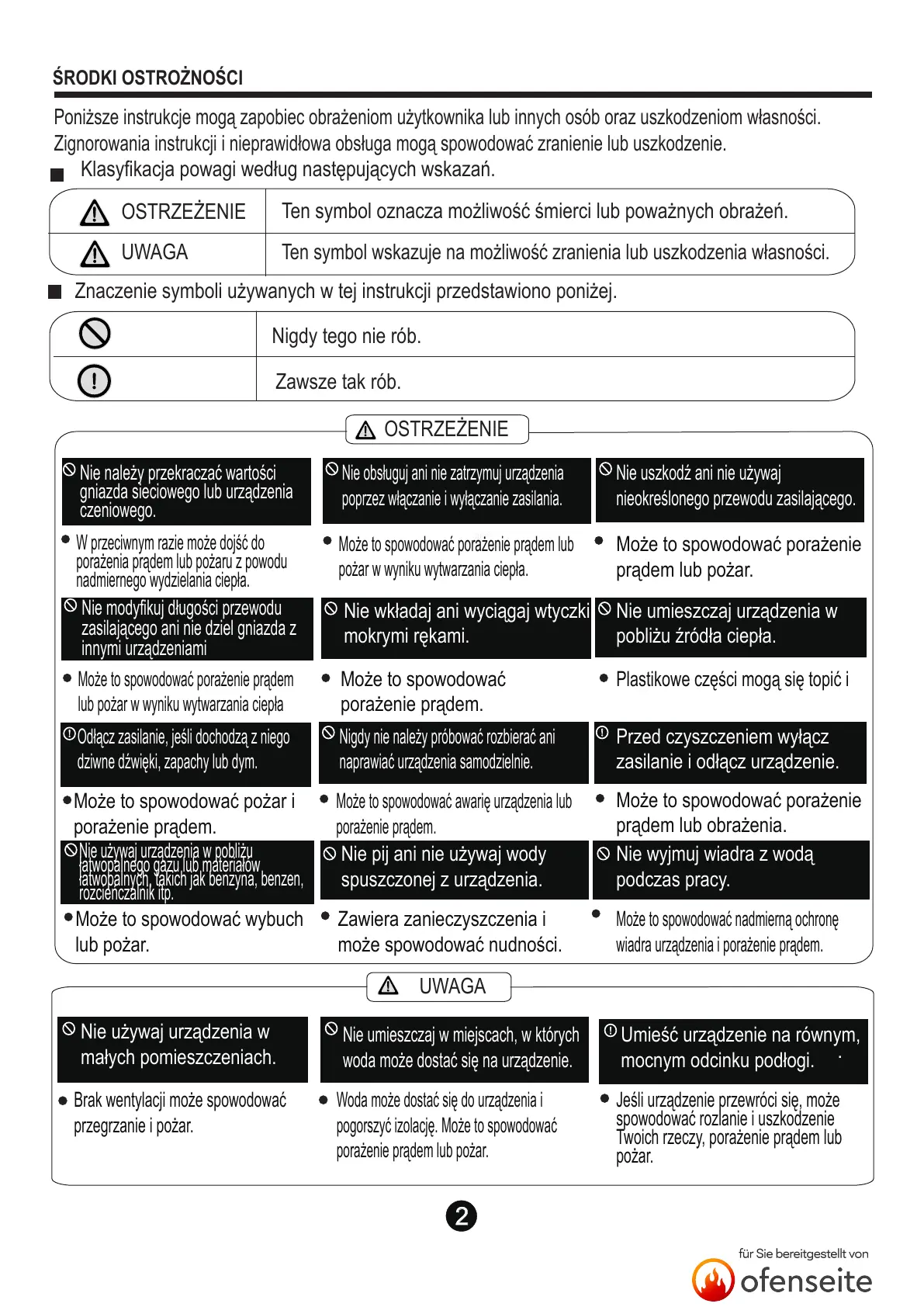 Zignorowania instrukcji i nieprawidłowa obsługa mogą spowodować zranienie lub uszkodzenie.