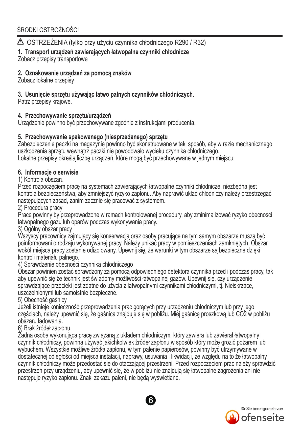 OSTRZEŻENIA (tylko przy użyciu czynnika chłodniczego R290 / R32)