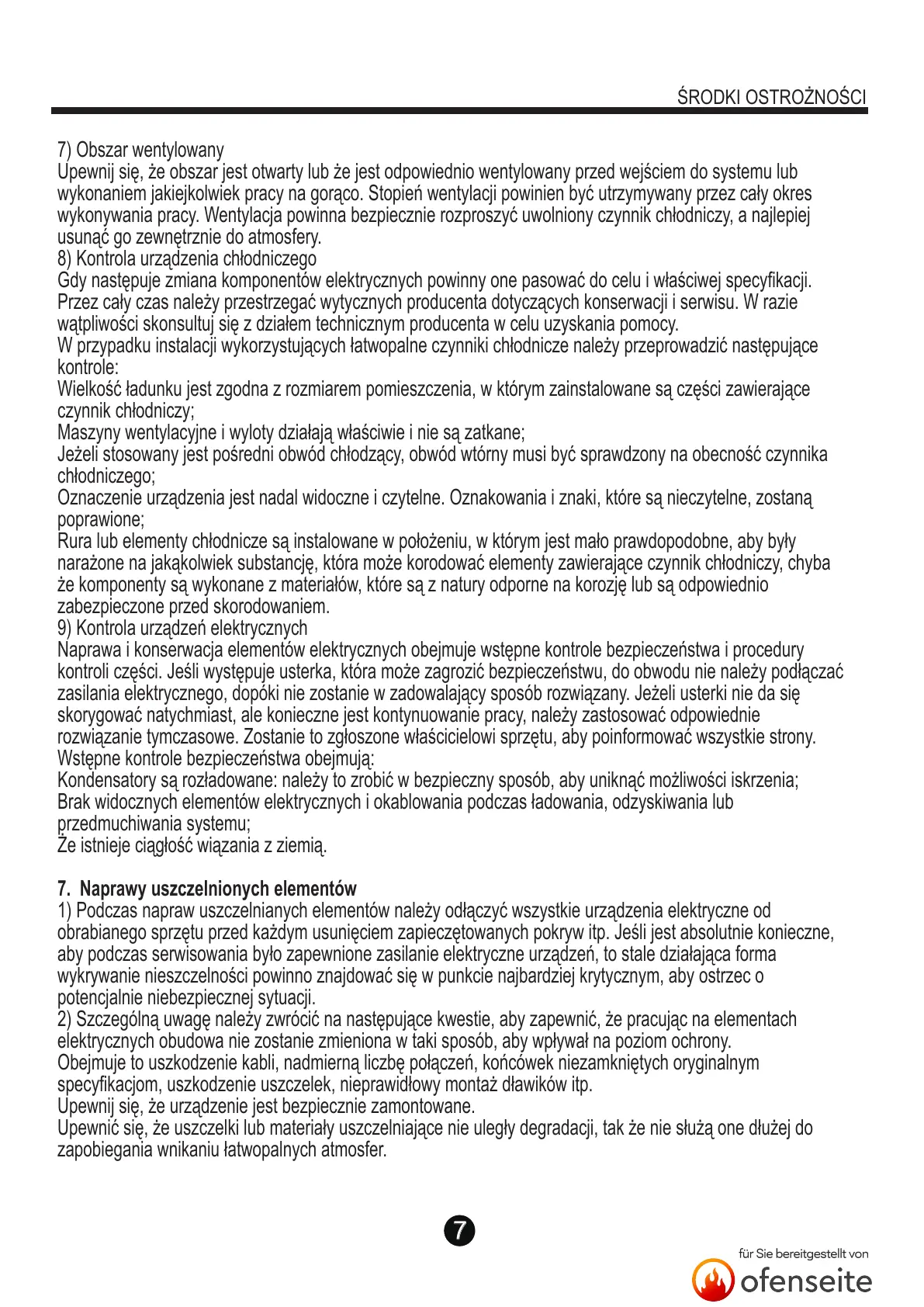 8) Kontrola urządzenia chłodniczego