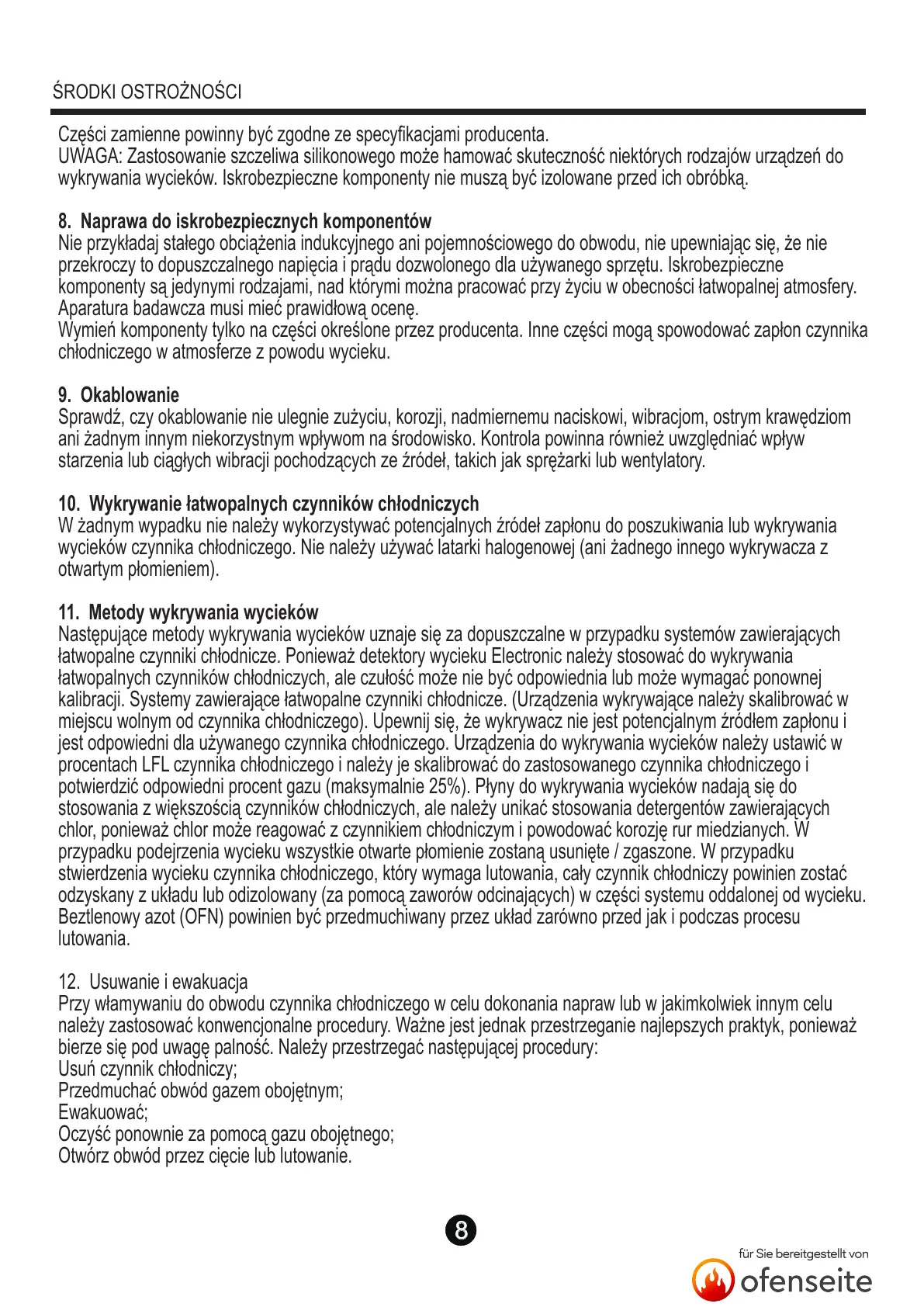 10. Wykrywanie łatwopalnych czynników chłodniczych