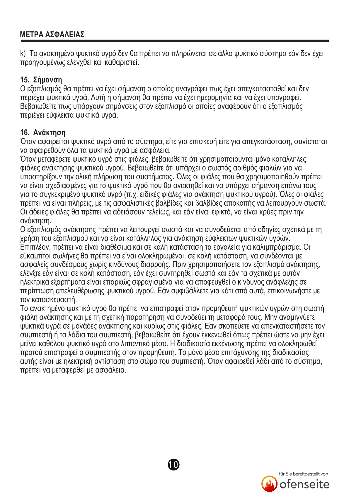 ψυκτικά υγρά σε μονάδες ανάκτησης και κυρίως στις φιάλες. Εάν σκοπεύετε να απεγκαταστήσετε τον