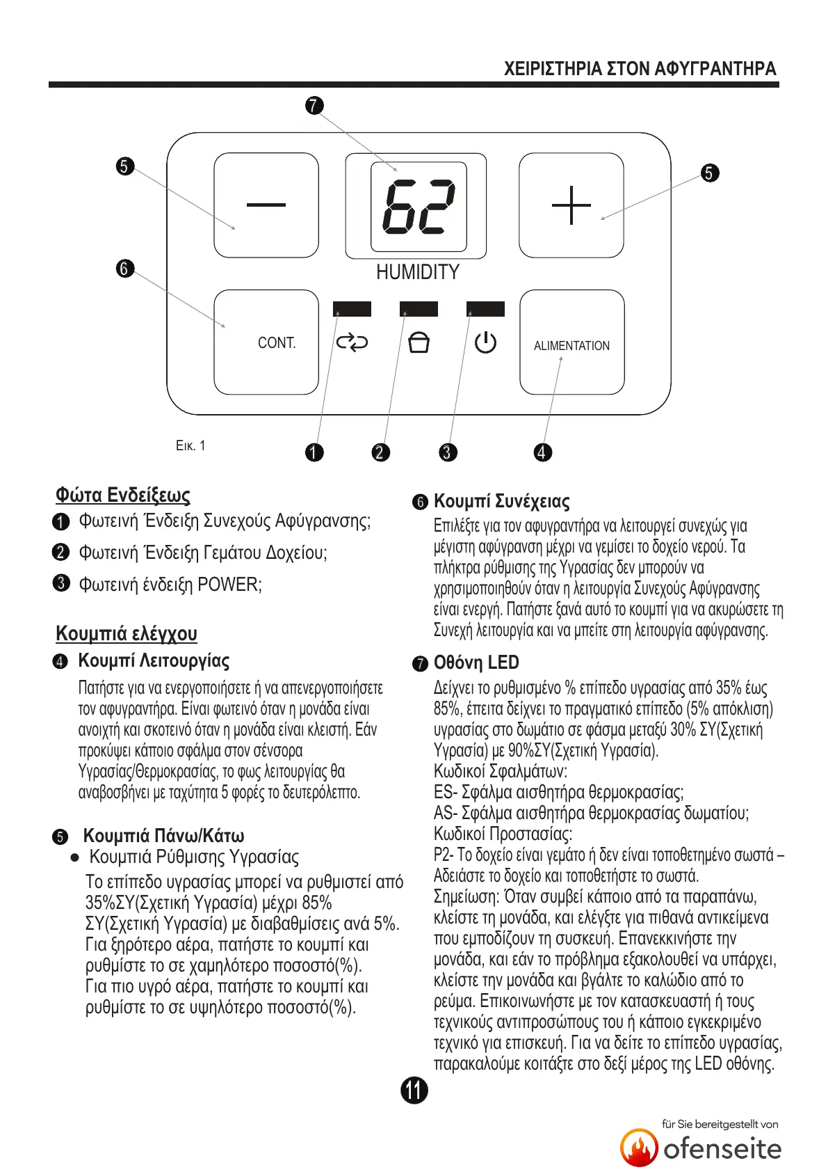 ● Κουμπιά Ρύθμισης Υγρασίας