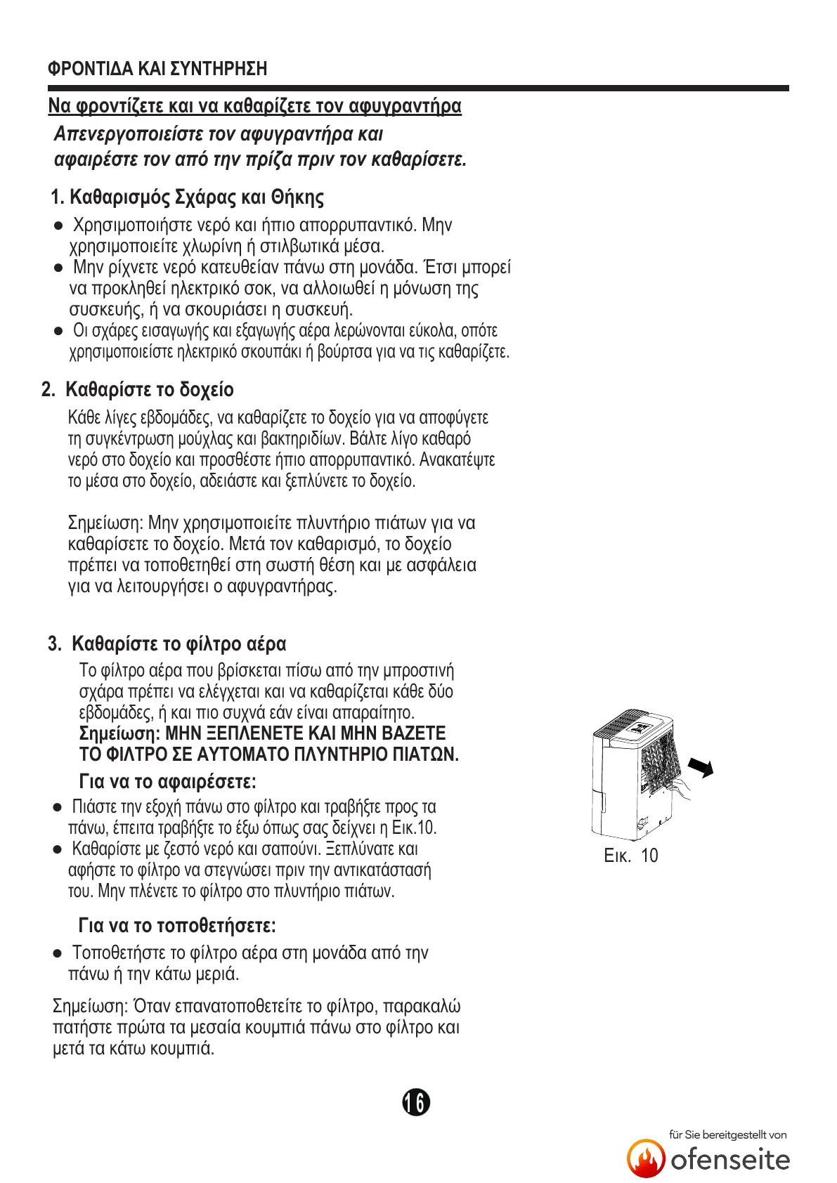 Να φροντίζετε και να καθαρίζετε τον αφυγραντήρα