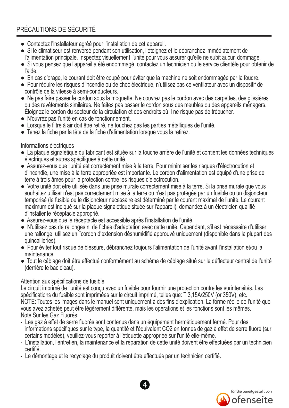 ● Si le climatiseur est renversé pendant son utilisation, l’éteignez et le débranchez immédiatement de