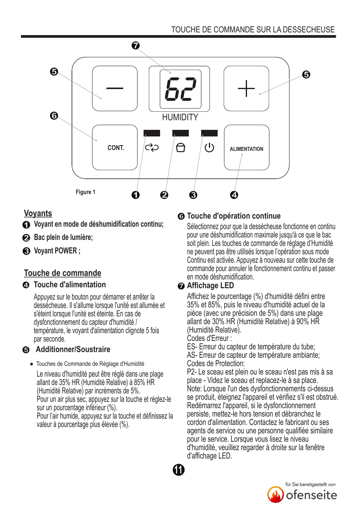 Pour un air plus sec, appuyez sur la touche et réglez-le