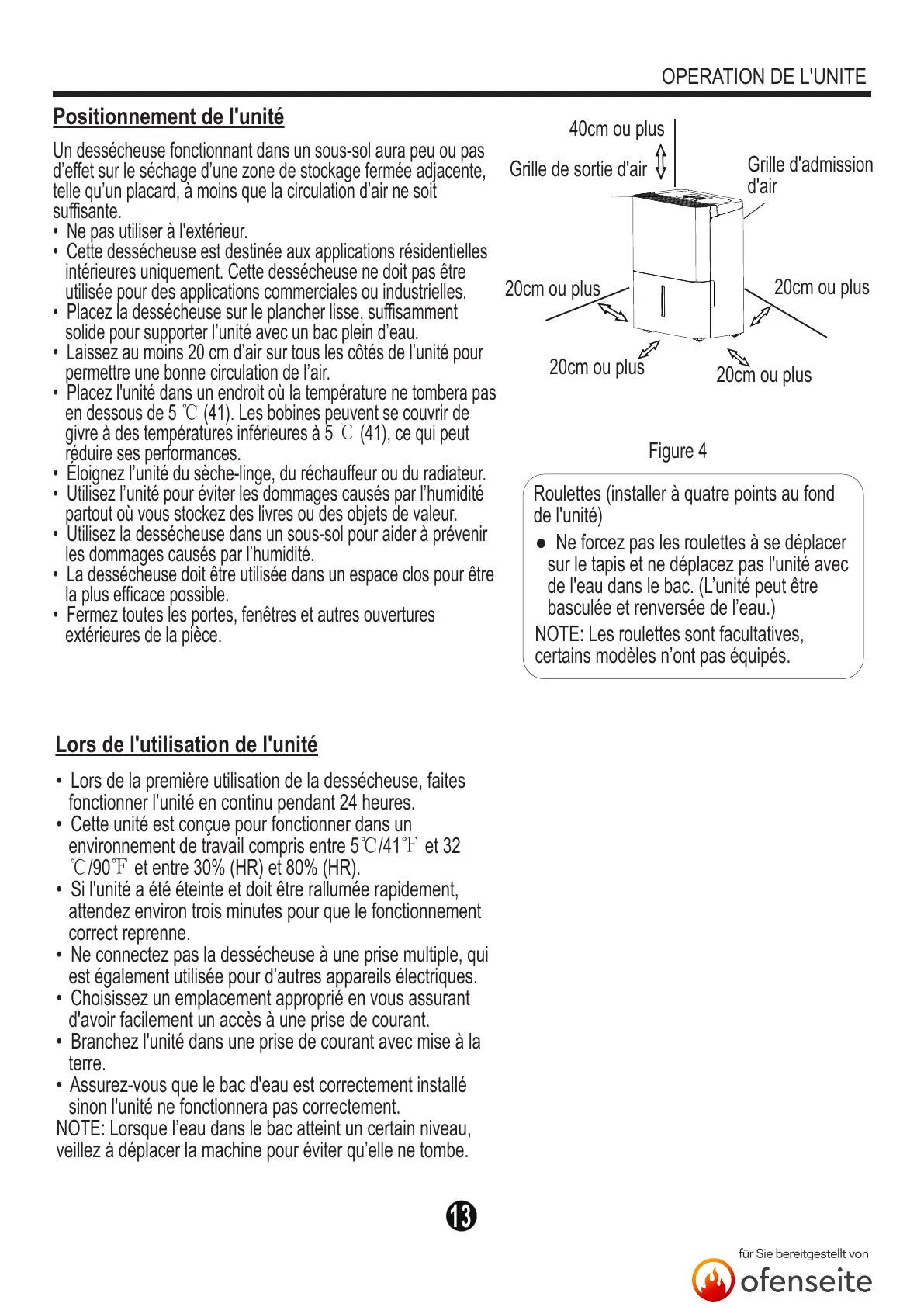 • Placez la dessécheuse sur le plancher lisse, suffisamment