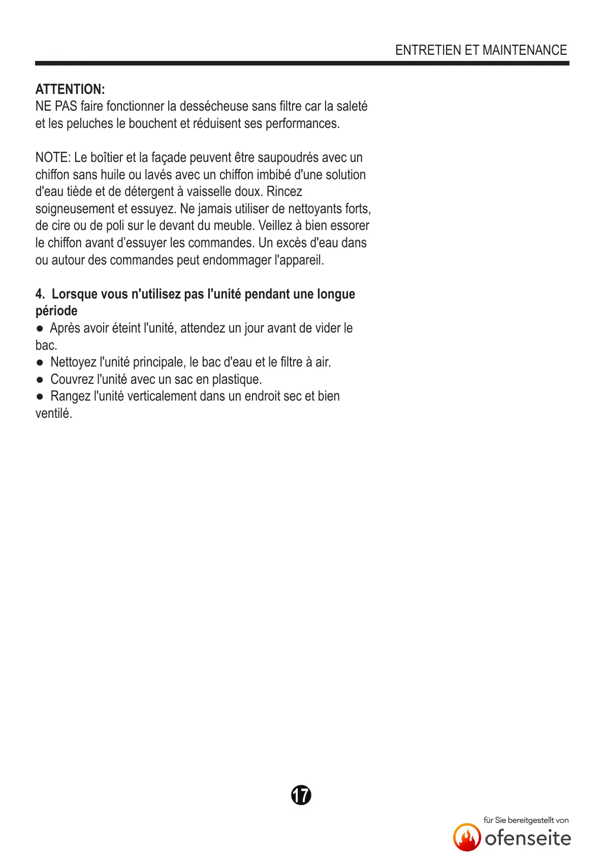 4. Lorsque vous n'utilisez pas l'unité pendant une longue