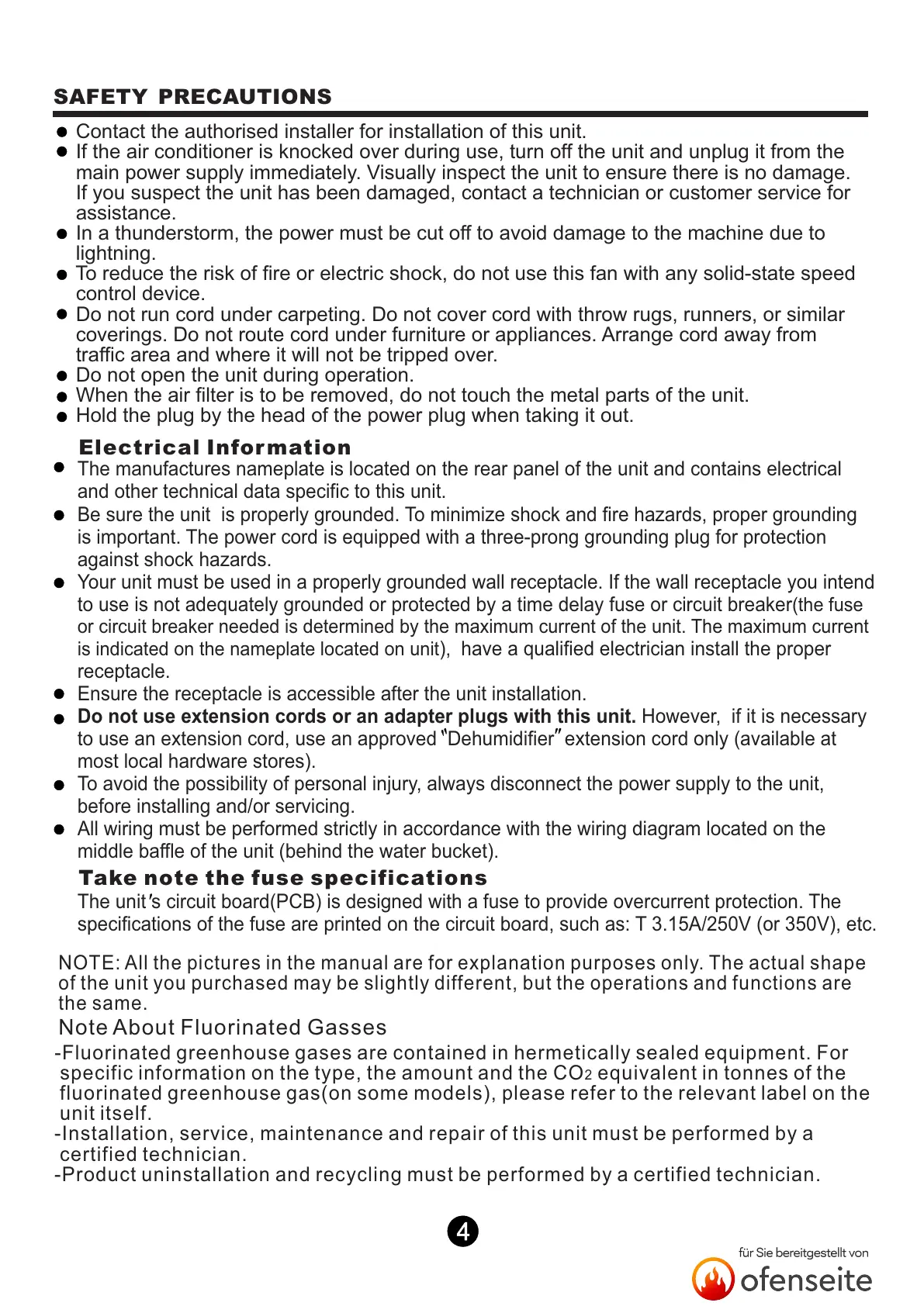fluorinated greenhouse gas(on some models), please refer to the relevant label on the