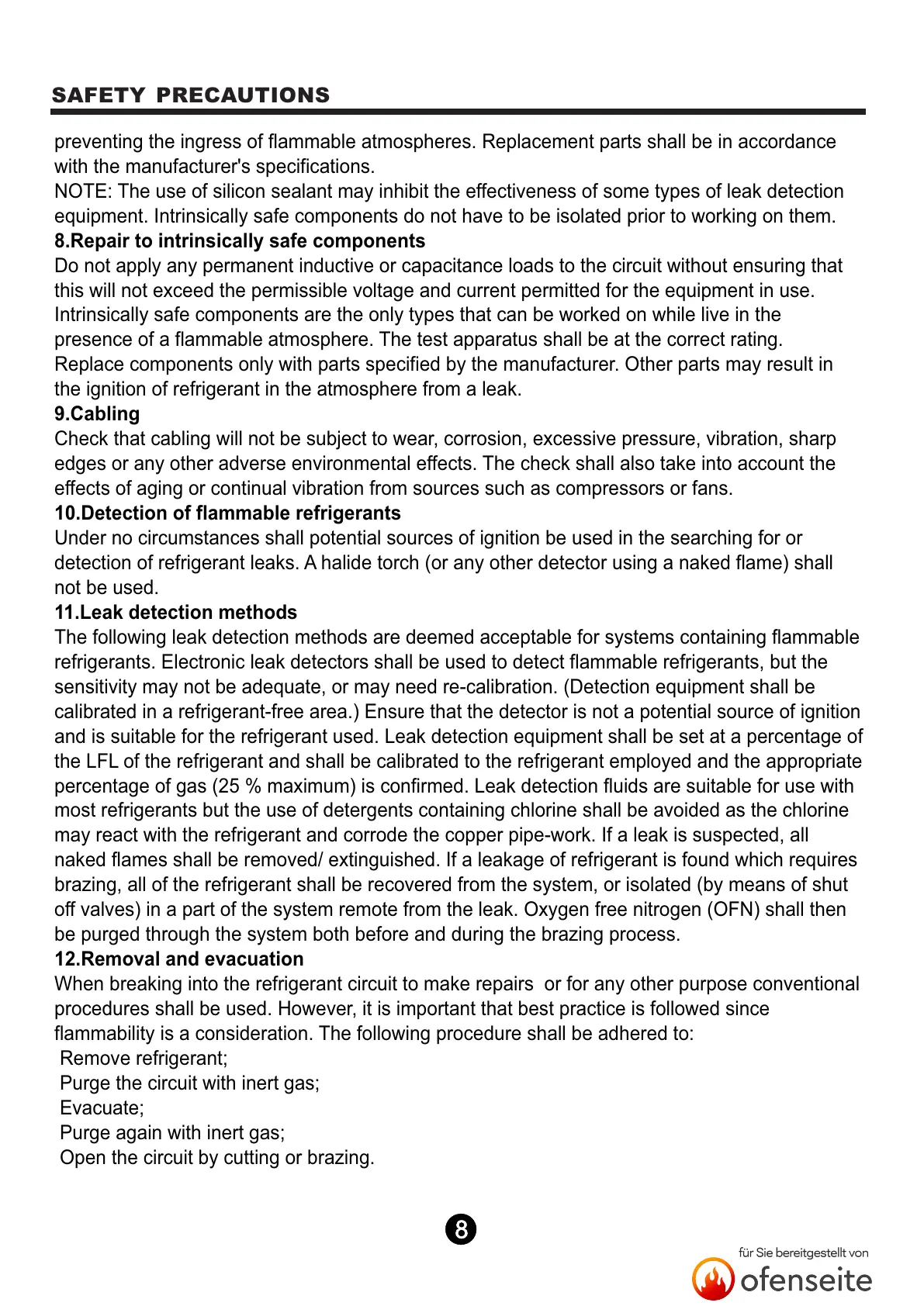 10. Detection of flammable refrigerants
