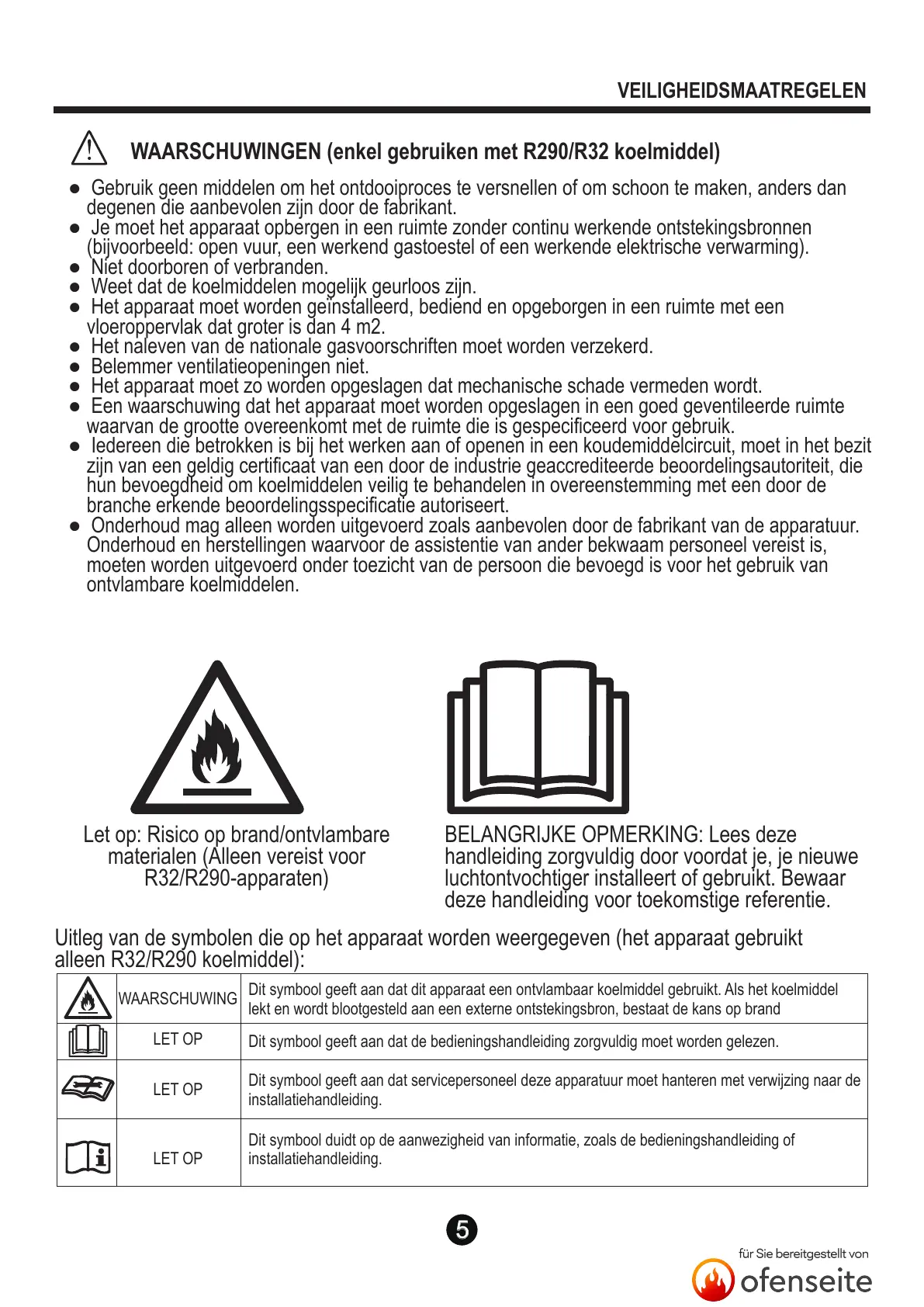 WAARSCHUWINGEN (enkel gebruiken met R290/R32 koelmiddel)