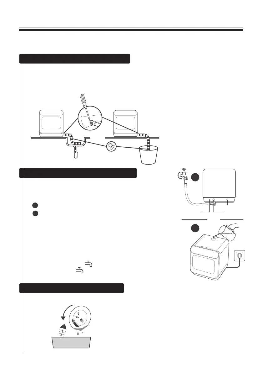 Conexión de la manguera de desagüe: coloque el extremo del desagüe en un fregadero o balde.