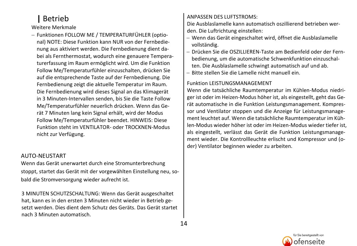 Funktionen FOLLOW ME / TEMPERATURFÜHLER (optio-