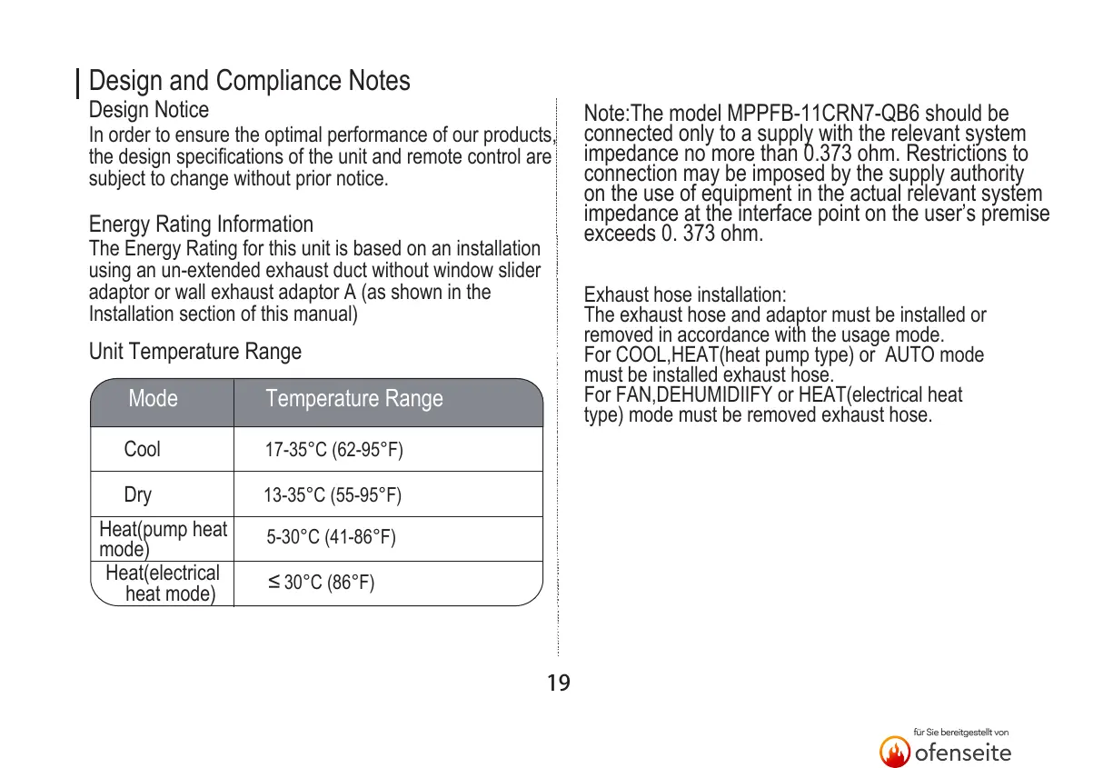 The Energy Rating for this unit is based on an installation