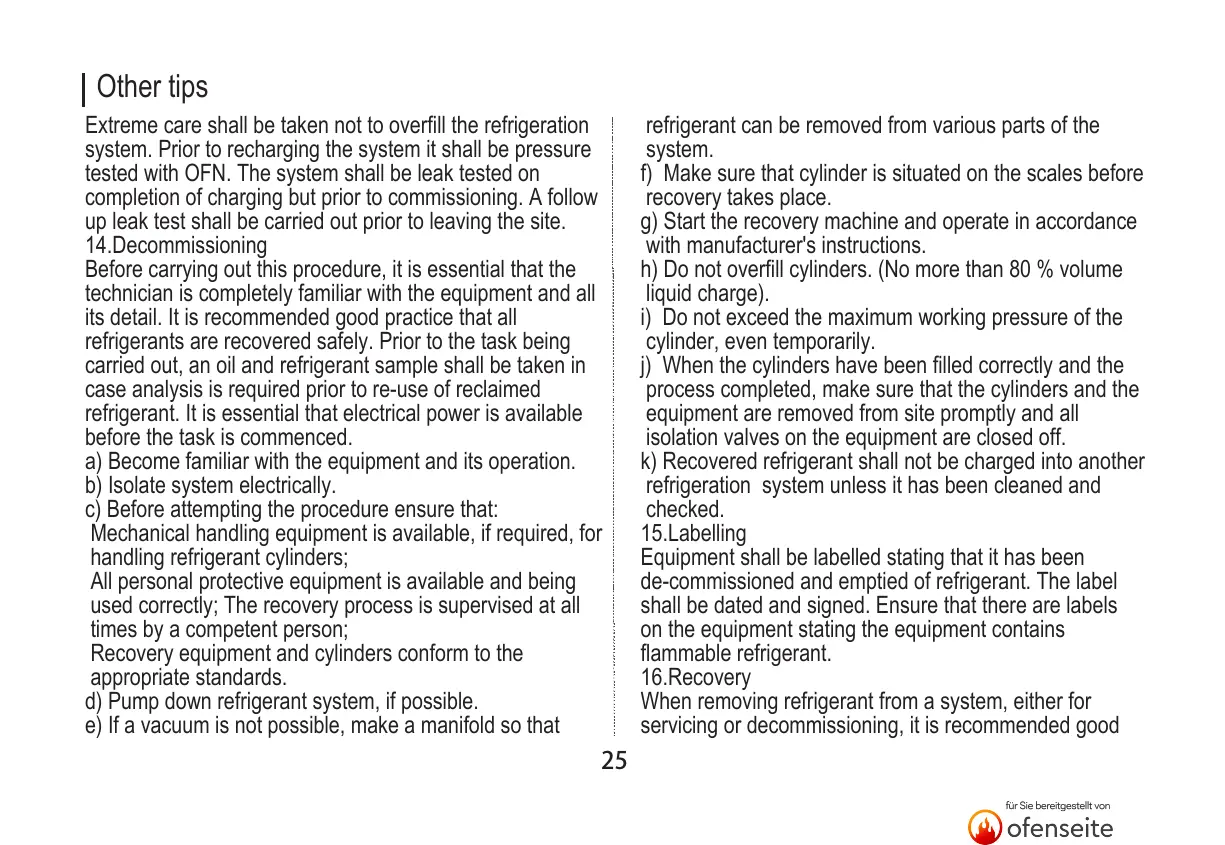 Extreme care shall be taken not to overfill the refrigeration