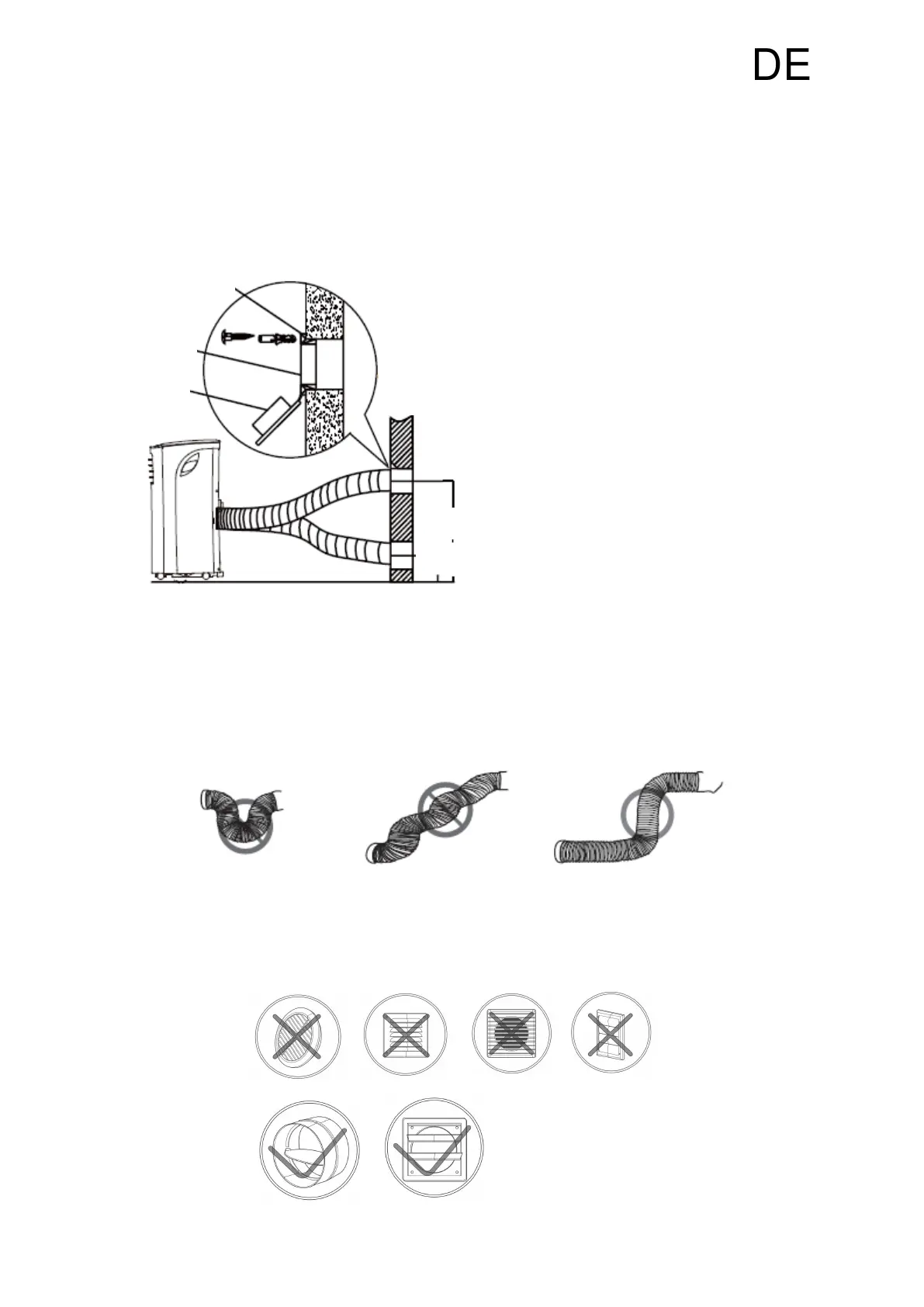 Hinweis: Um eine einwandfreie Funktion zu gewährleisten, dürfen Sie den Schlauch NICHT