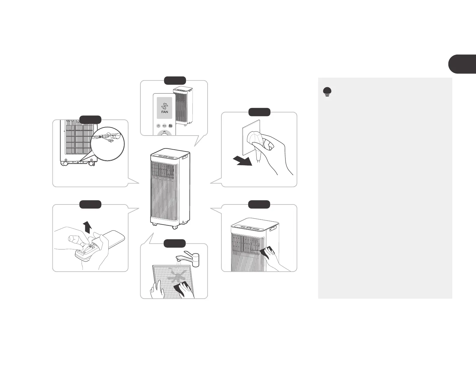 • Uruchom urządzenie w trybie wentylatora na 12 godzin w ciepłym pomieszczeniu, aby je osuszyć i zapobiec pleśni.