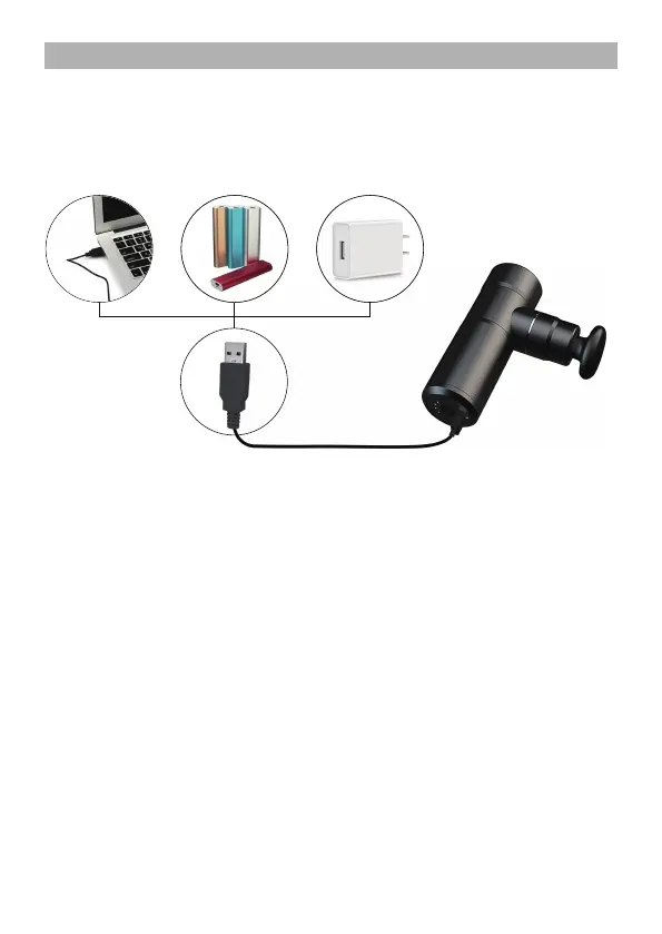 Connect the USB cable to any USB charger, it can be plugged in the portable
