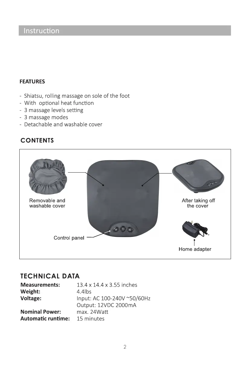 Comfier CF-5903 - Instruction; Contents; Technical Data