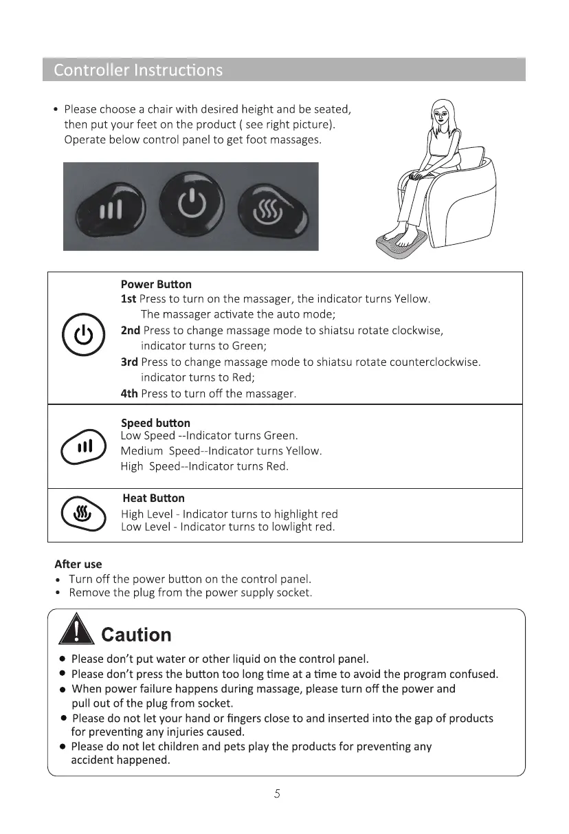 Comfier CF-5903 - Controller Instructions; Power Button; Speed Button; Heat Button