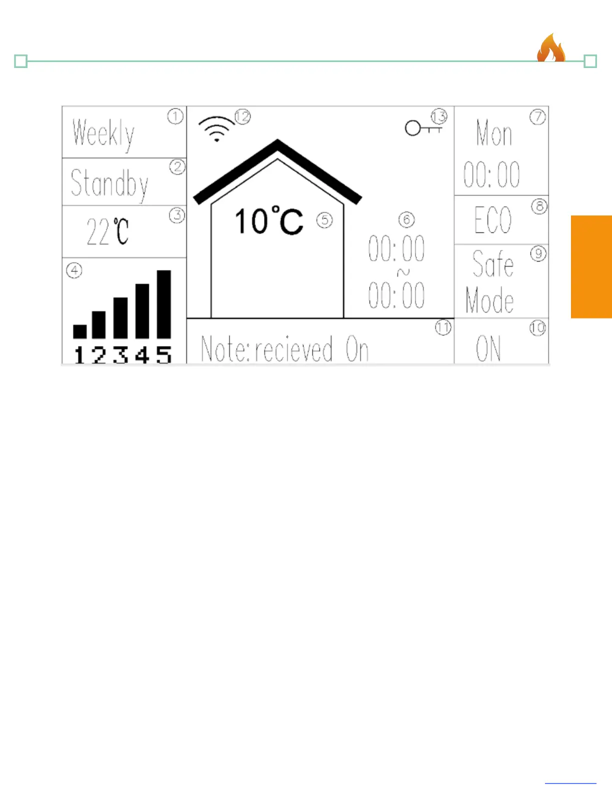 Work Stage: Displays the operational stage the stove is currently in. (Igniting, Heating, Fire Off,