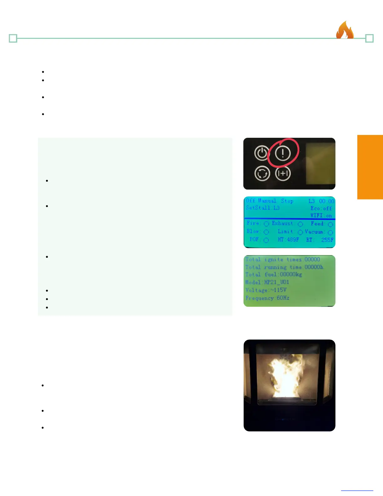Once the fire is lit, and the stove achieves operating temperature, the work stage box on the screen will