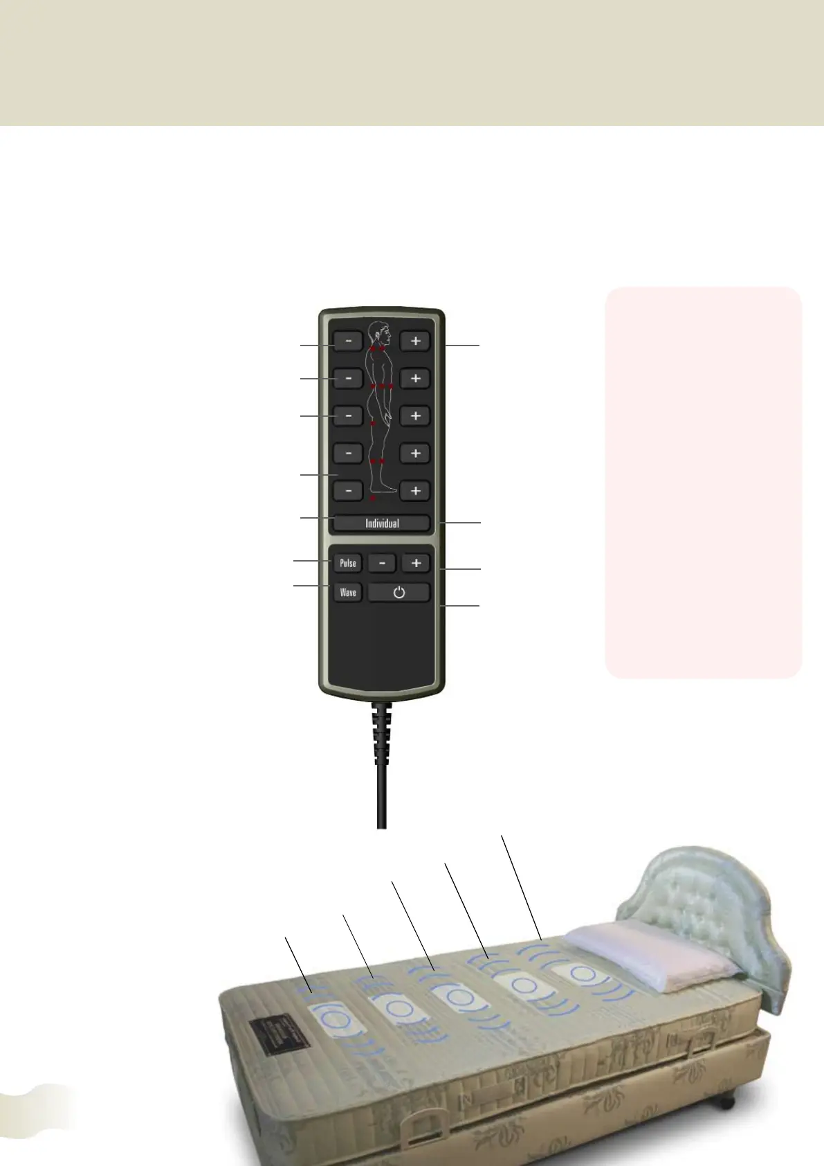 The picture below shows the 5 massage zones that are contained within your mattress (if