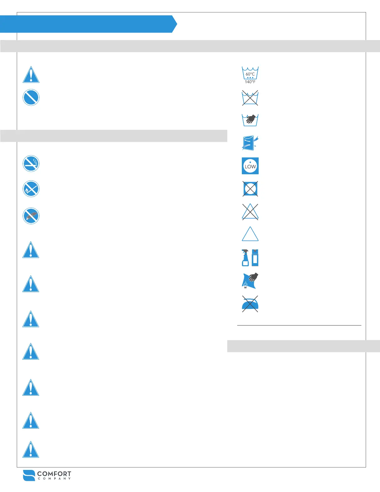 Comfort Company cannot be held responsible for damages or injury due to misuse