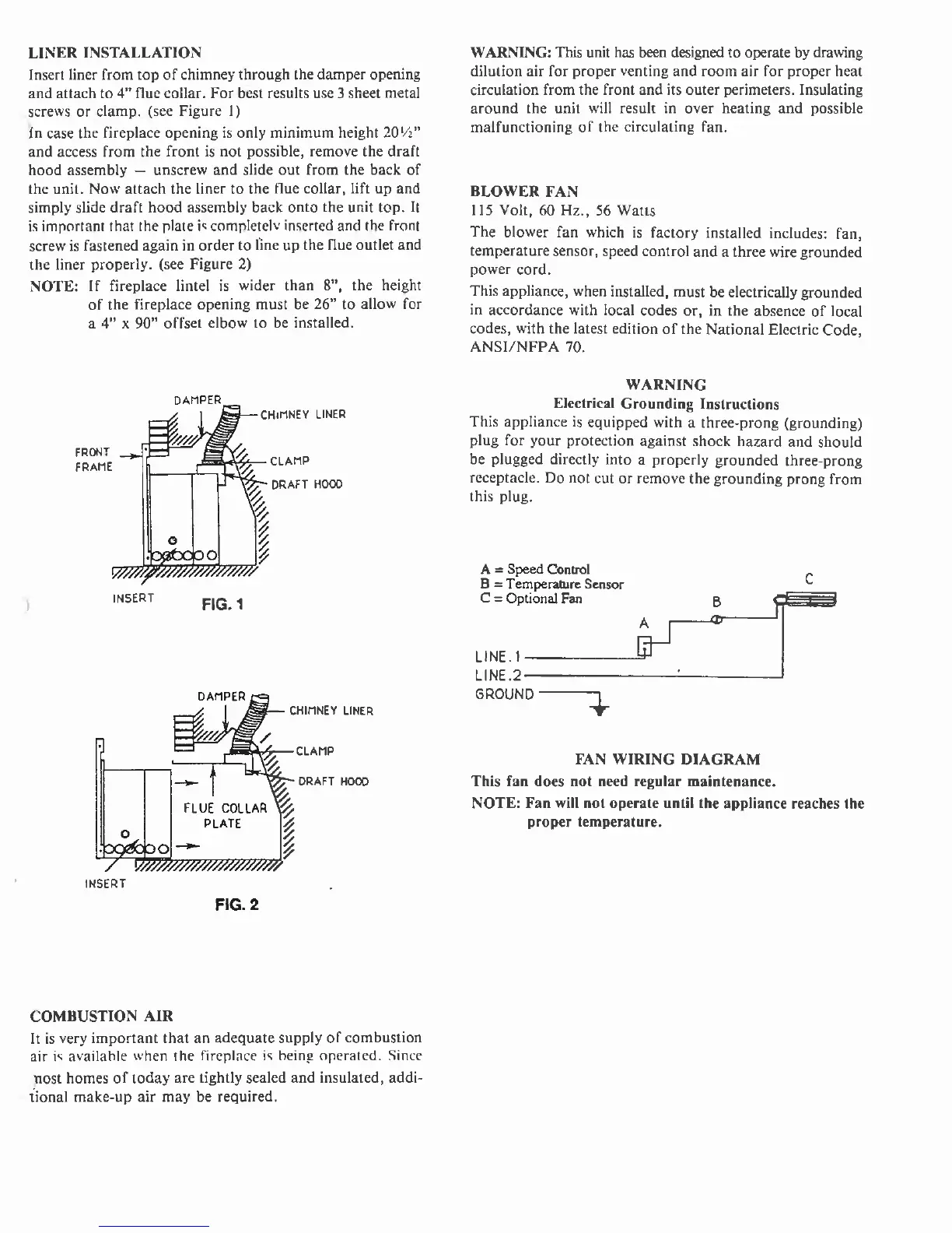 Comfortec C30 - Liner Installation Procedure; Attaching Flue Collar and Draft Hood; Fireplace Opening Considerations; Blower Fan and Electrical Grounding