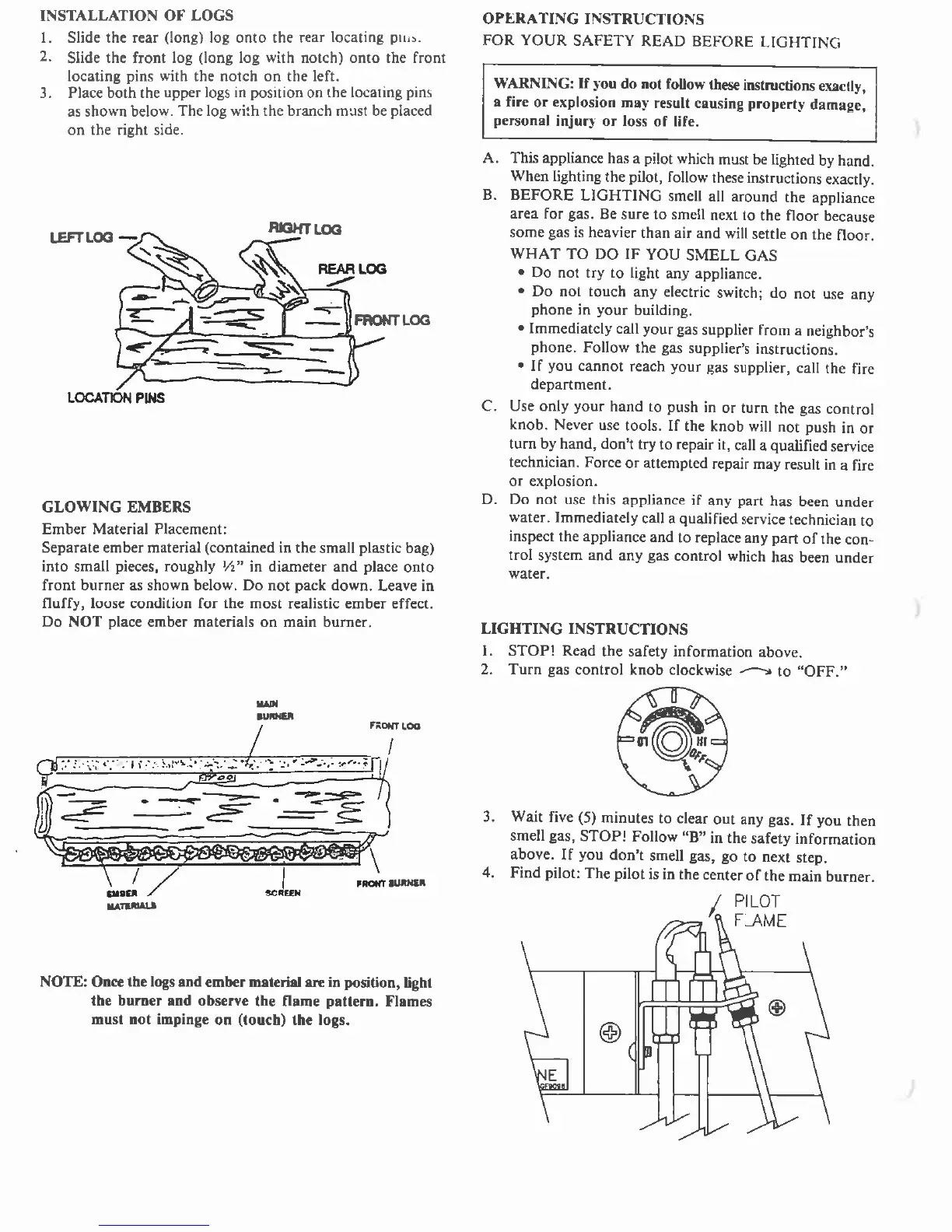 Comfortec C30 - Installation of Logs and Ember Placement; Log Placement Instructions; Ember Material Placement; Operating Instructions and Safety