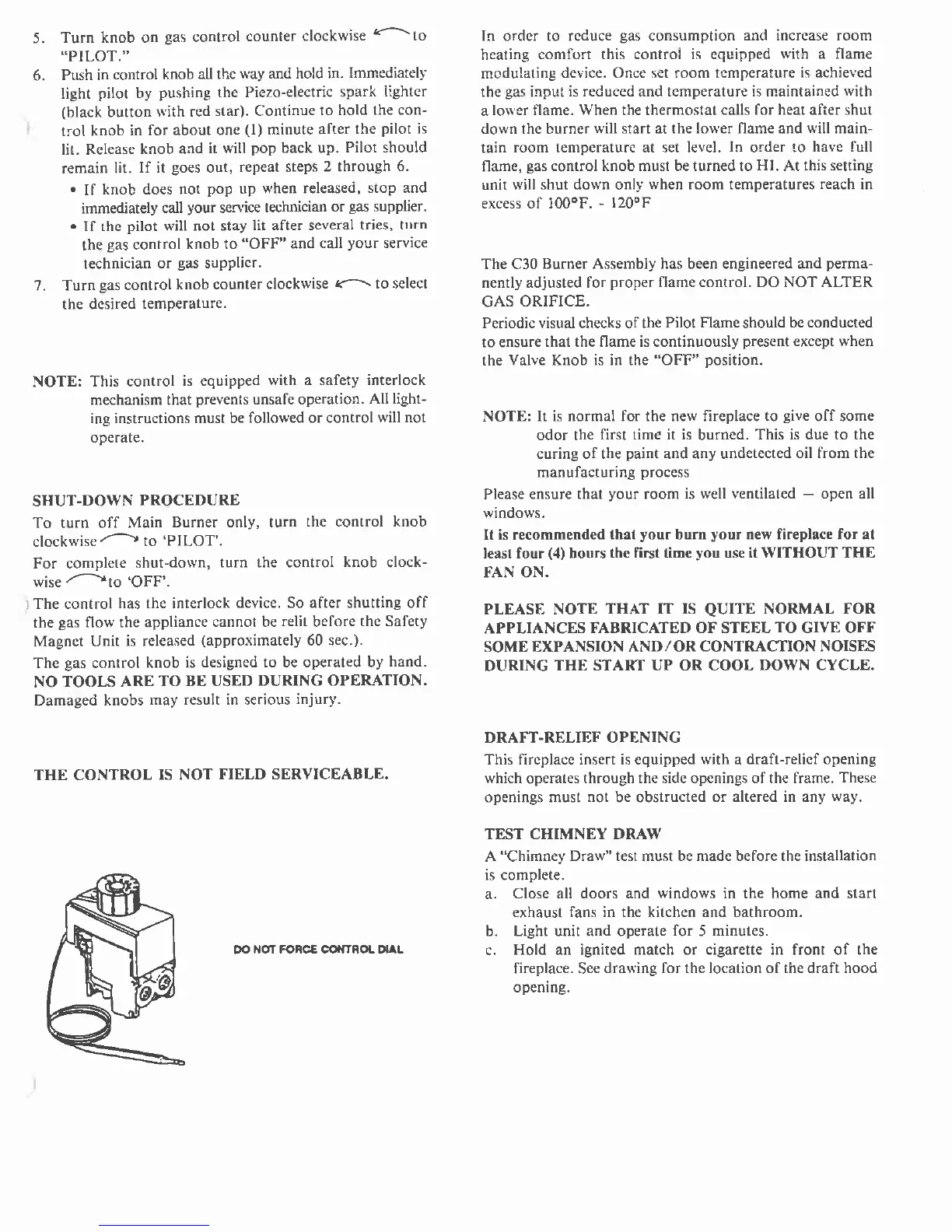 Comfortec C30 - Gas Control Operation and Safety; Pilot Lighting Procedure; Shut-Down Procedure; Flame Modulating Device