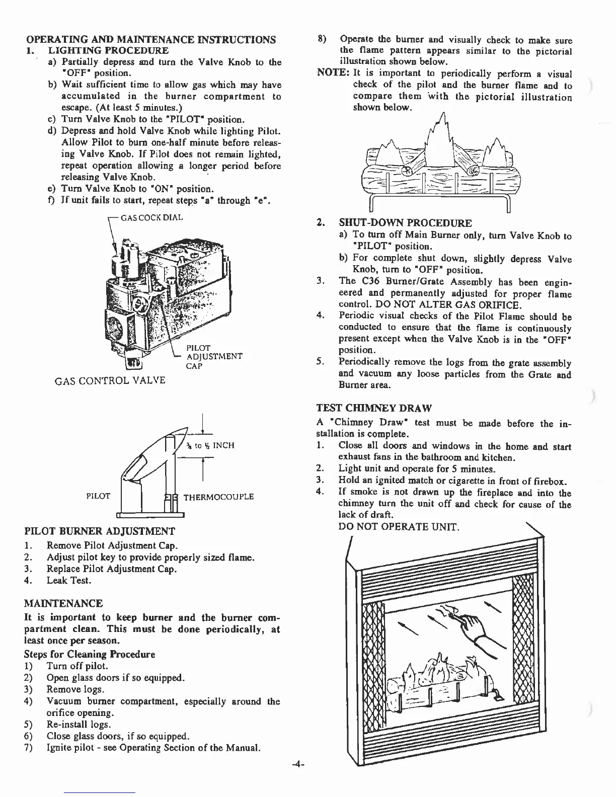 Comfortec C36MN - Operation and Maintenance Procedures; Lighting, Shut-down, and Pilot Adjustment; Routine Maintenance and Chimney Test