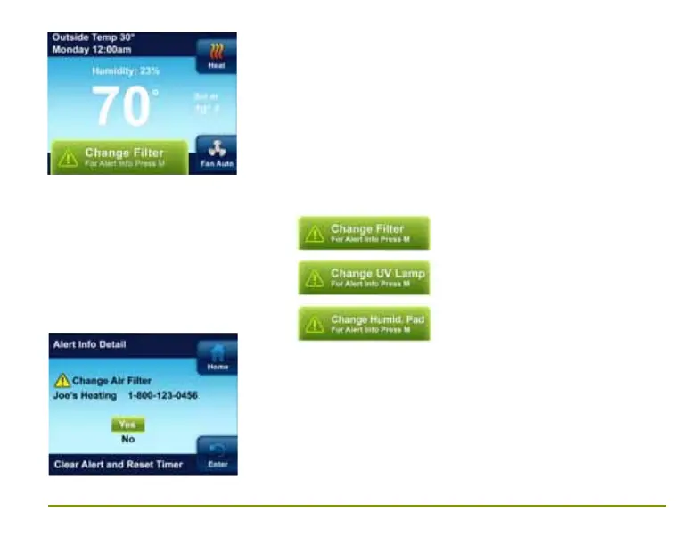 reminders when the air filter, humidifier pad, or