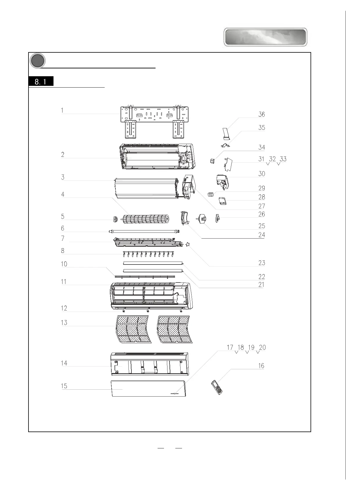 Exploded View of Components and Parts of Indoor Unit