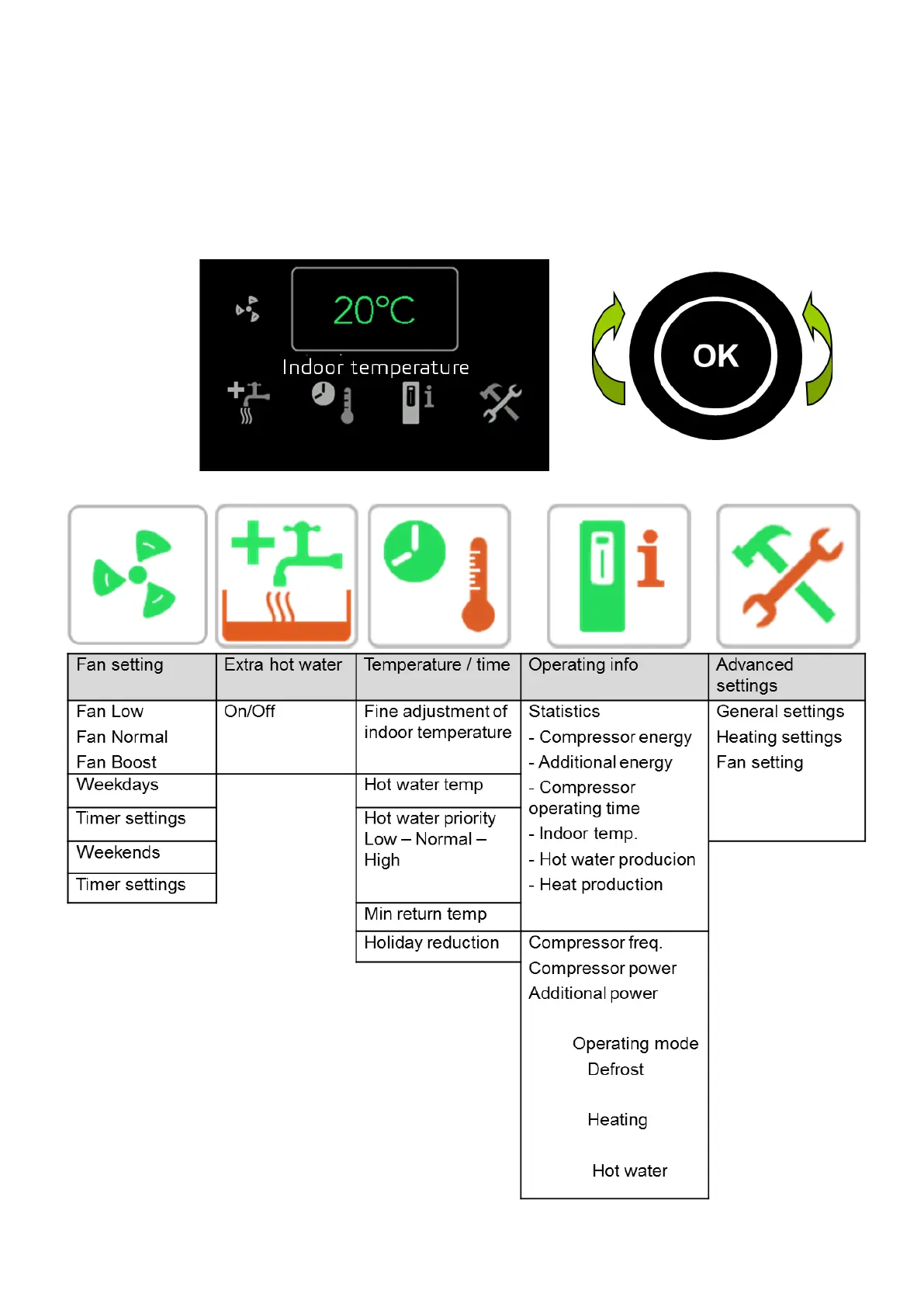 temperature, hot water priority and other functions.